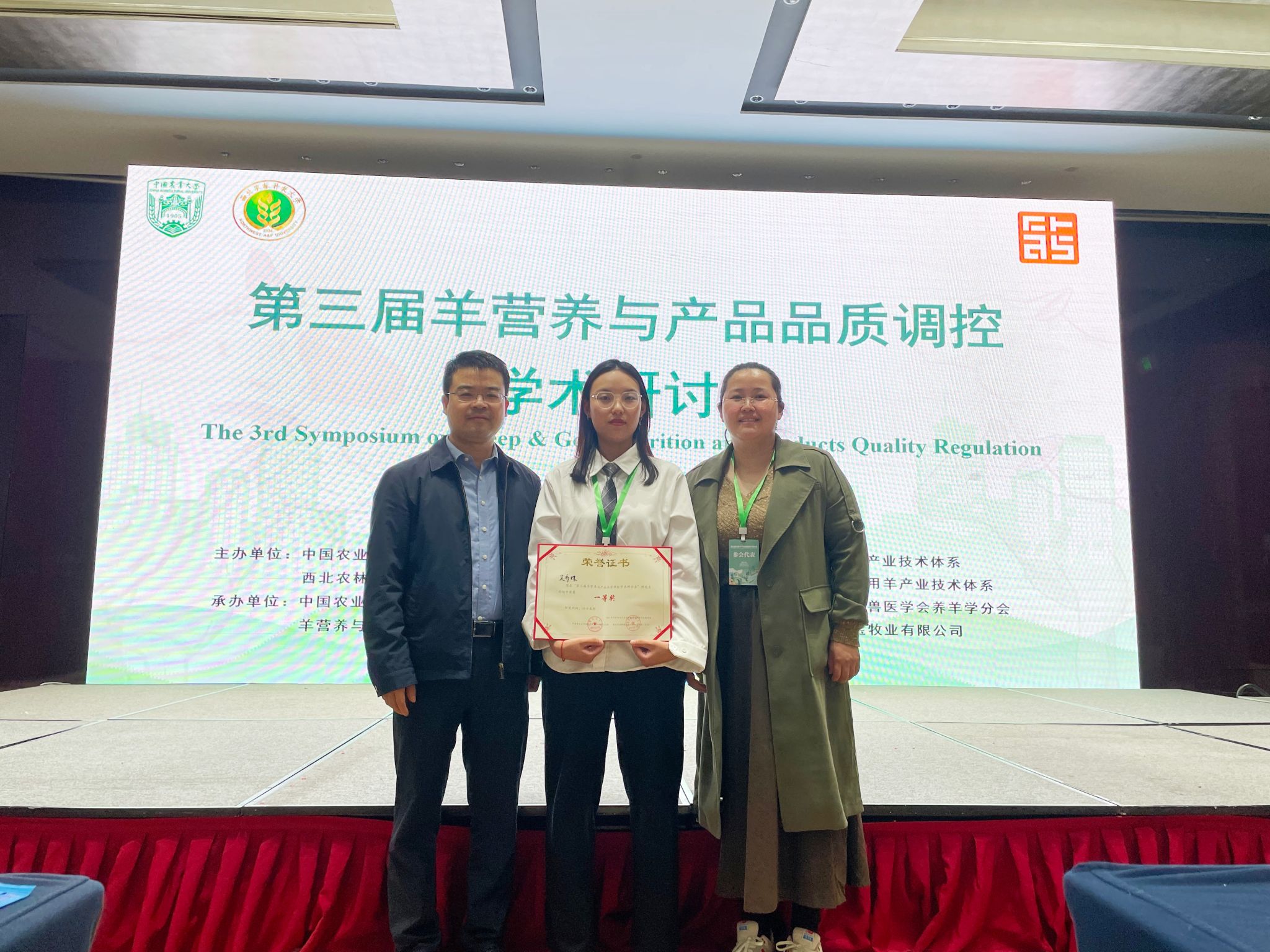 本网讯 11月4日,由中国农业大学和西北农林科技大学主办的第三届羊营养与产品品质调控学术研讨会在北京举办。动物科技学院副院长凌英会、教师李爽带领2022级畜牧专业研究生吴乔珠参加此次学术研讨会研究生论坛。经过精彩汇报和激烈角逐,吴乔珠在研究生论坛中获得一等奖的优异成绩。