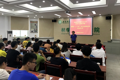 本网讯7月2日下午,林学与园林学院2018暑期“三下乡”实践活动出征仪式在林学楼二楼报告厅举行,学院党政领导刘盛全、江正君、徐斌以及院团委老师参加了出征仪式。仪式由院团委老师主持,各支出征队伍参加仪式。
