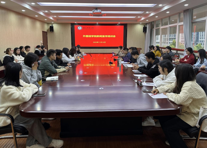 本网讯 11月10日下午,外国语学院在外语楼506会议室开展外国语学院新闻宣传培训会。外国语学院党委副书记、纪委书记、副院长姬惠惠,专职辅导员,学生分会负责人及新闻传媒中心全体成员,各班级班长参加会议。