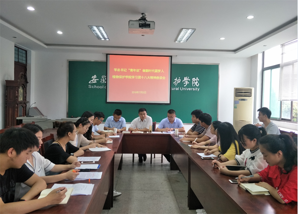 本网讯 近日,为组织学生深入学习习近平总书记关于青年和共青团工作的系列重要讲话、指示精神以及共青团十八大精神,教育引导学生“敢于有梦、勇于追梦、勤于圆梦”,植物保护学院在大学生中间开展“学总书记‘青年说’,做新时代圆梦人”主题教育实践活动。7月5日,学院召开学习共青团十八大精神座谈会,启动主题教育实践活动。学院党委副书记、副院长戴照力和院办老师、学生党员代表、学生会干部及各班班长、团支部书记等参加会议。