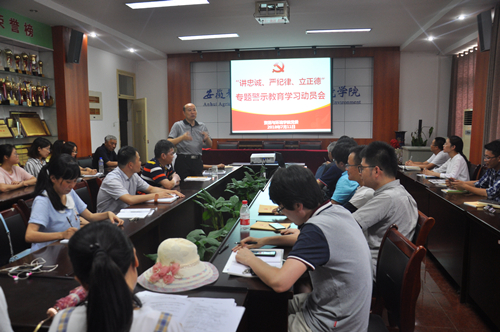 本网讯 7月11日下午,资源与环境学院召开全体教职工党员和在校学生党员大会,就“讲忠诚、严纪律、立政德”专题警示教育进行动员部署并开展相关学习警示教育活动。会议由学院党委书记李春保主持。