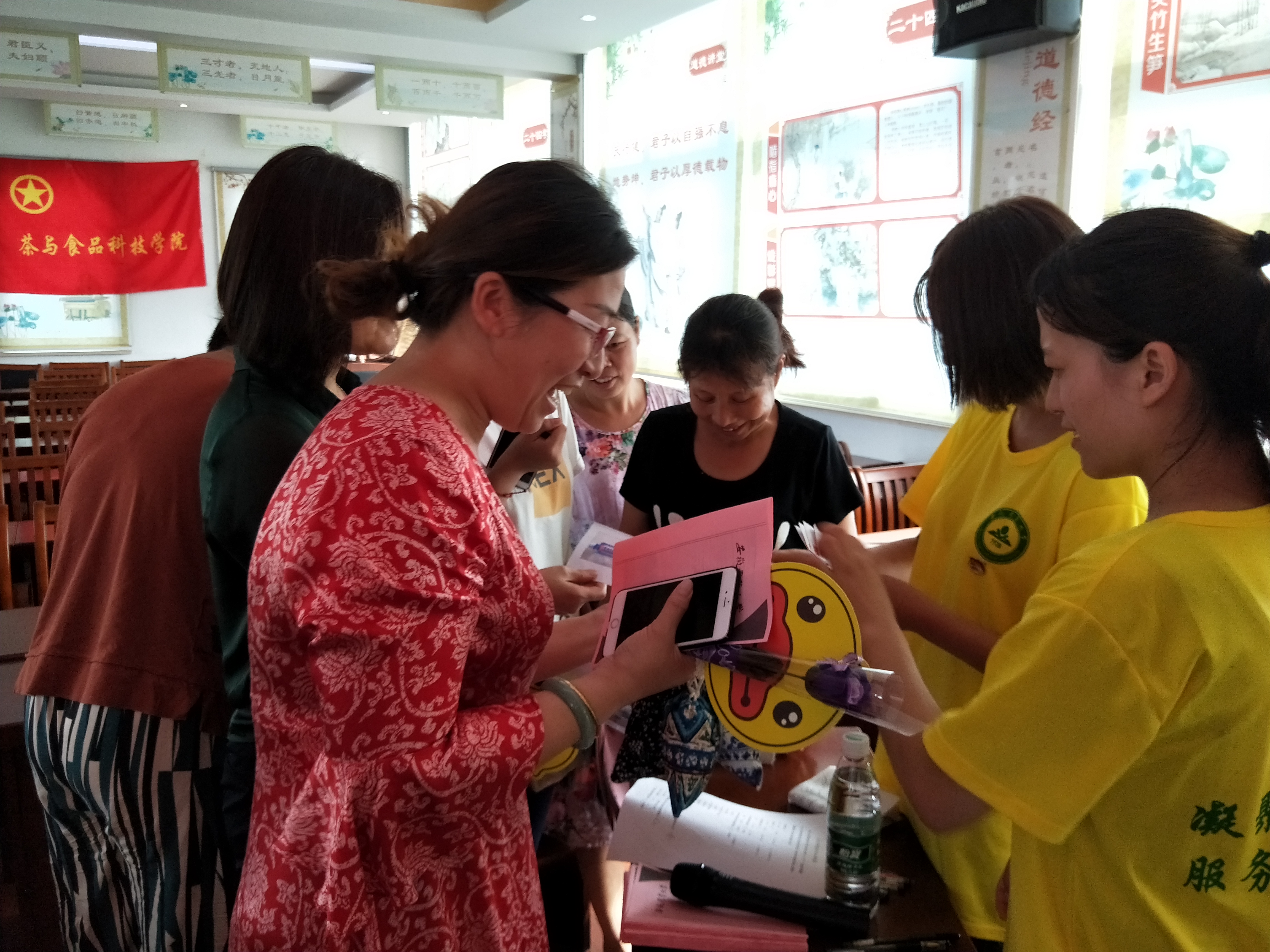 7月10日,实践团成员们走进汤沟镇社区居委会,为居民们带来了茶叶知识、食品安全知识普及和优美的茶艺表演,让居民们在一冲一泡间走进茶的精彩世界,领略了茶学的博大精深和茶文化的独特韵味。在趣味答题的环节,成员们向当地居民宣传食品安全与营养方面的知识,并科普有关食品品质鉴定常识及膳食合理搭配的技巧,充分展示了专业技能服务于乡村一线的生动画面。