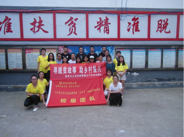 本网讯7月9日—7月14日,人文社会科学学院中文系11名学生组成的暑期“三下乡”实践团队在老师的带领下,赴亳州市利辛县城关镇开展了为期6天的暑期“三下乡”社会实践活动。6天来,队员们走访了五十多个干部和群众,深入了解了城关镇的扶贫工作,他们将为城关镇书写扶贫脱贫好故事。