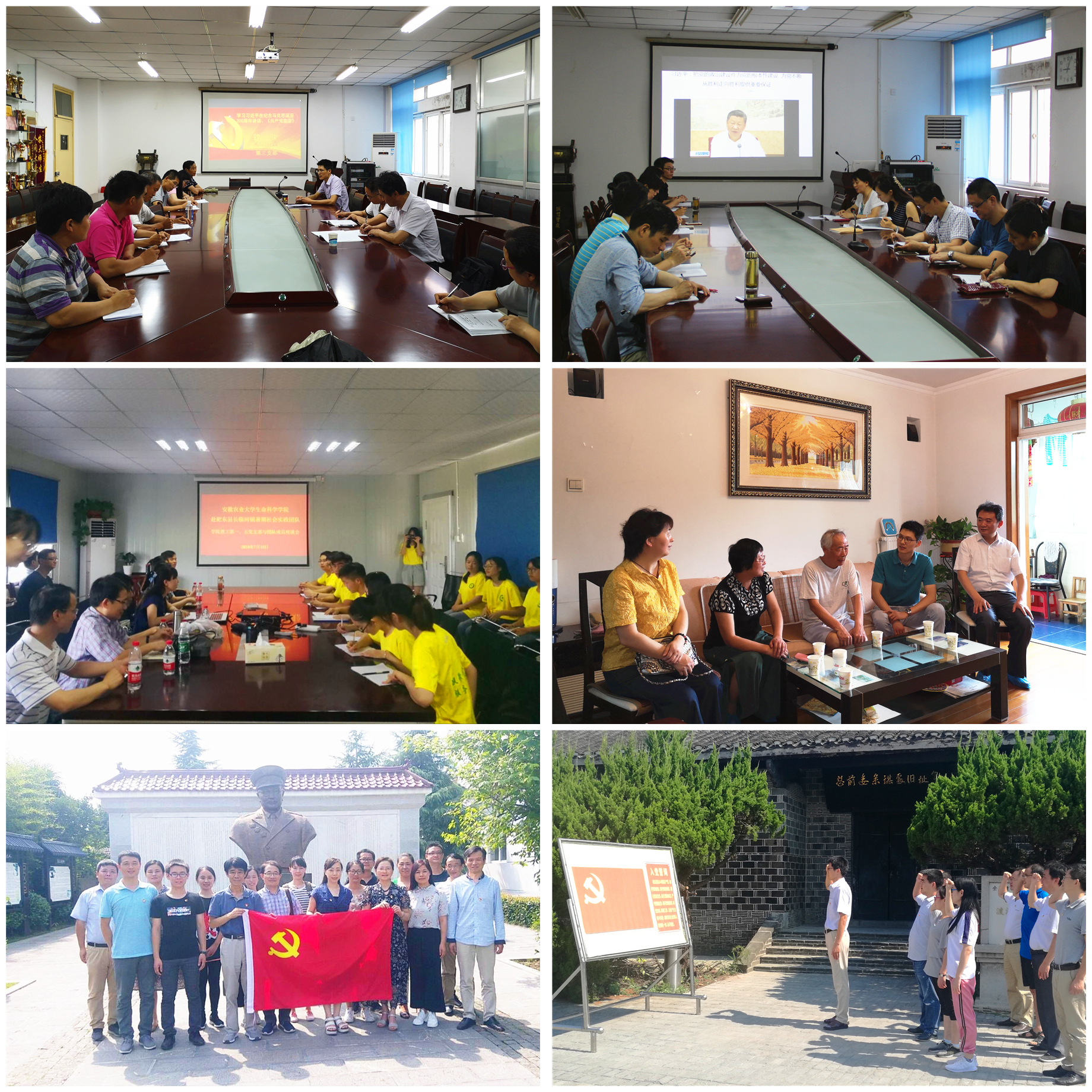按照校党委统一部署,学院结合庆祝建党97周年系列活动在广大党员中开展强化学习教育、深化思想认识。组织一次集中研讨。7月4日下午,学院召开中心组专题学习,学习习近平总书记在纪念马克思诞辰200周年大会上的讲话以及《习近平新时代中国特色社会主义思想三十讲》等内容,组织党员读原著、学原文、悟原理,教育引导广大党员树牢“四个意识”,坚定“四个自信”。开展一次主题党日活动。7月以来,学院各党支部结合支部特色,精心组织开展主题党日活动,其中,教工第一、第五党支部结合学院暑期“三下乡”肥东县长临河镇社会实践团队开展党支部主题党日活动,将理论知识搬到田间地头,切实解决企业在实际生产中遇到的困难及技术需求。表彰一批先进典型。按照基层党组织标准化建设的要求,在民主评议党员基础上,学院党委评选出11名优秀共产党员和优秀党务工作者,进一步在全院范围内形成崇尚先进、学习先进、争当先进的浓厚氛围。举办一次专题党课。学院各党支部书记结合本支部党员实际情况,围绕习近平总书记在北京大学师生座谈会上的讲话和在纪念马克思诞辰200周年大会上的讲话精神分别在所在支部讲授党课,用经典涵养正气、指导实践、推动工作。开展一次“送温暖”走访慰问活动。“七一”前夕,学院党政领导、支部书记走访慰问学院退休老党员张立铭、段家龙老师。向他们致以节日的问候和祝福。(通讯员:魏晓飞)