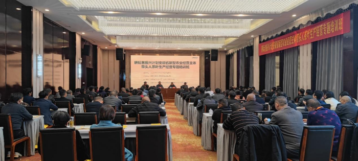 本网讯 11月20日上午,由外国语学院承办的“耕耘者振兴计划”安庆市新型农业经营主体带头人茶叶生产经营专题培训班在安庆市桃花源酒店顺利开班,安徽省农业农村厅农村合作经济指导处副处长章新振,安庆市农业农村局党组成员、副局长陈群,我校继续教育学院院长胡启涛出席开班式,外国语学院党委书记、经济学教授何如海主持开班式。安庆市各级农经站辅导员或农技推广中心负责人、县市从事茶产业县级以上示范合作社和家庭农场负责人共100人参加培训。