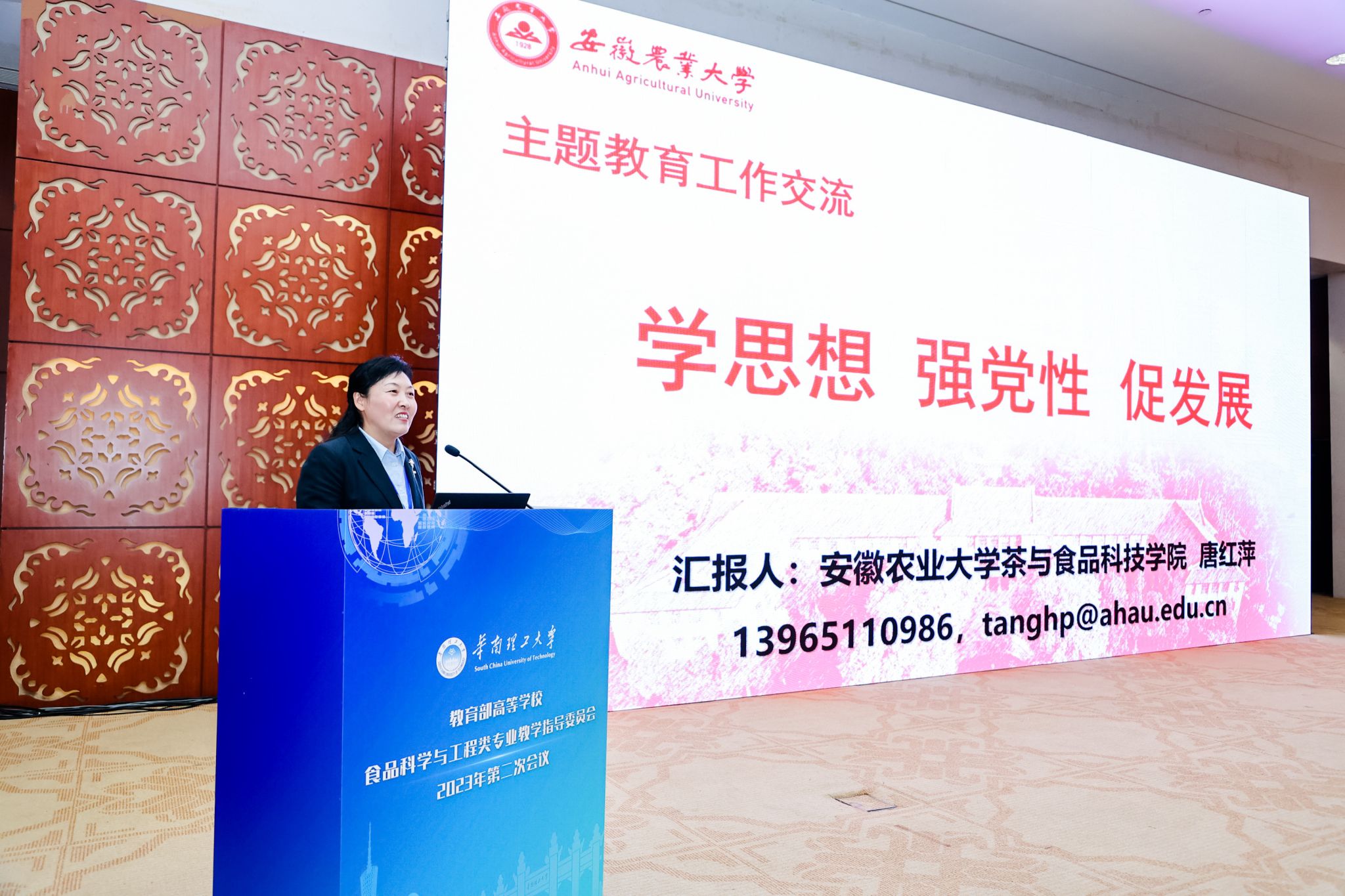 在全国高校食品学科党建联盟第三次年会暨第三届食品学科党建育人创新论坛上,我院提交的题为《学思想 强党性 促发展》主题教育经验总结和《“三茶融合”基层思想政治工作示范点建设》人才培养与思政建设经验总结,双双入选《教育部高等学校食品科学与工程类专业教学指导委员会2023年第二次会议——党建育人创新分论坛交流材料汇编》。会上,唐红萍书记应邀作了题为《学思想 强党性 促发展》的大会交流报告,她重点分享了学院主题教育开展情况、特色做法和工作成效,与联盟院校进行了充分的交流与讨论。