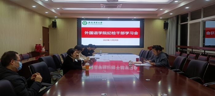 本网讯 11月29日下午,外国语学院在外语楼506会议室召开第四季度纪检干部学习会。学院纪委委员、党支部纪检委员参会,会议由院党委副书记、纪委书记、副院长姬惠惠主持。