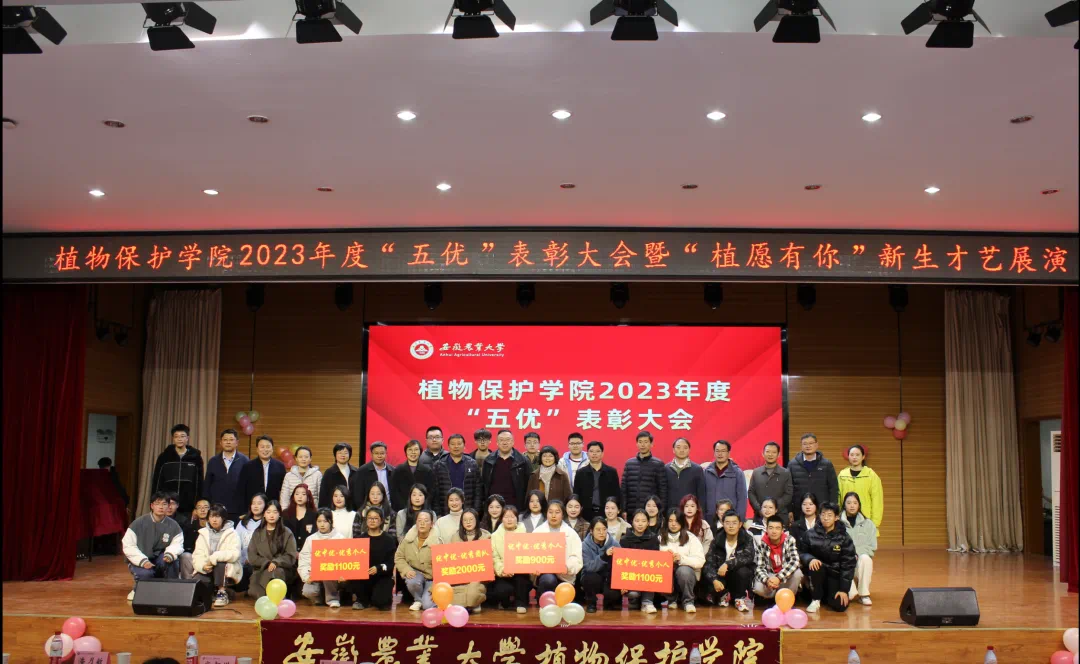 本网讯 11月30日晚,植物保护学院在大学生活动中心举行2023年“五优”表彰大会暨“植愿有你”新生才艺展演。活动以线上线下相结合的方式进行。学院教师、本科生专兼职辅导员、2023级全体本科新生、高年级学生代表以及获奖同学参加活动。