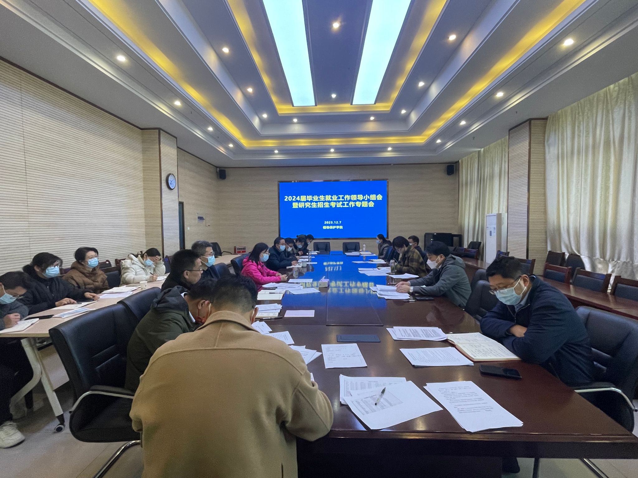 本网讯 为进一步做好毕业生就业考研工作,全力助力2024届毕业生实现高质量就业,12月7日,植物保护学院在中西部综合楼1213会议室召开2024届毕业生就业工作领导小组会暨研究生招生考试工作专题会。学院党政领导、系主任、毕业班辅导员、教学秘书、科研与研究生秘书、专职辅导员参加会议。