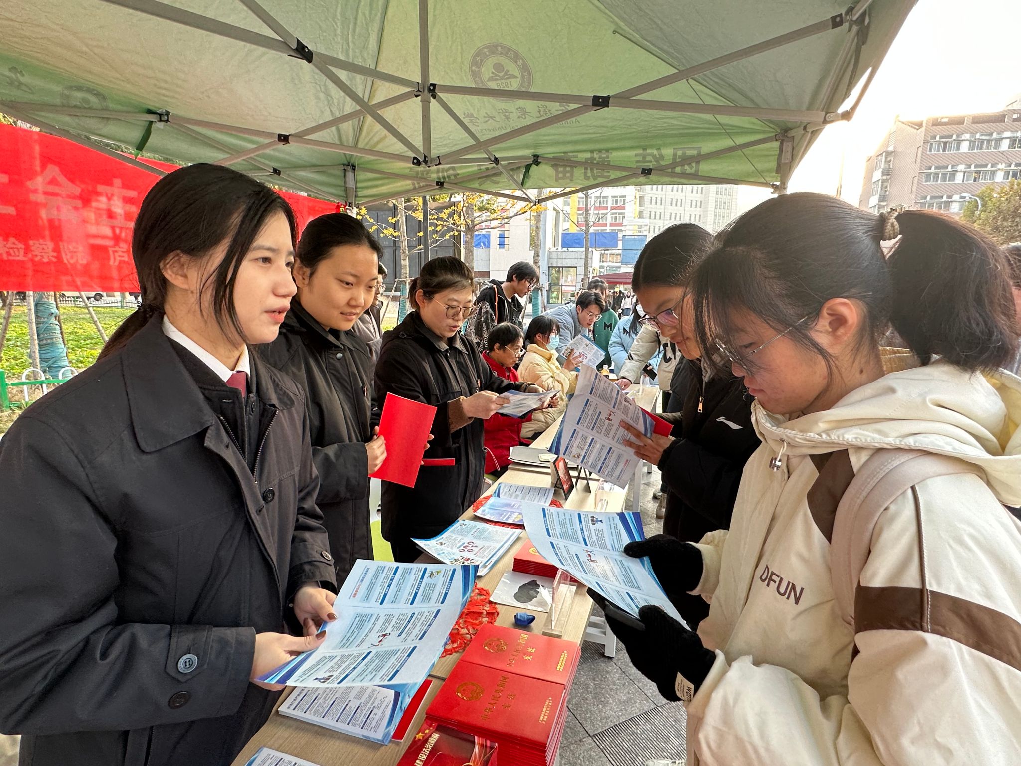活动中,法学专业学生党支部党员和相关单位工作人员积极向同学们宣传宪法等法律知识,并发放宣传册;安徽省庐阳区剪纸非遗传人现场设计创作“法治安农”、“法治庐阳”等剪纸,为同学们展示剪纸的文化魅力。学院师生还走进社区开展国家宪法日普法宣讲活动,从居民关切的问题入手,讲解宪法内容,开展法律知识咨询。