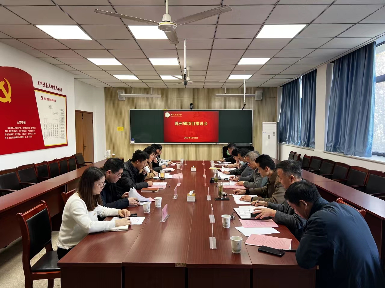 本网讯 12月8日,滁州鲫项目推进会顺利召开。安徽省农业农村厅渔业局、安徽省水产技术推广总站、滁州市农业农村局、安徽农业大学动物科技学院相关负责人参加会议。会议由动物科技学院党委书记沈兆梅主持。