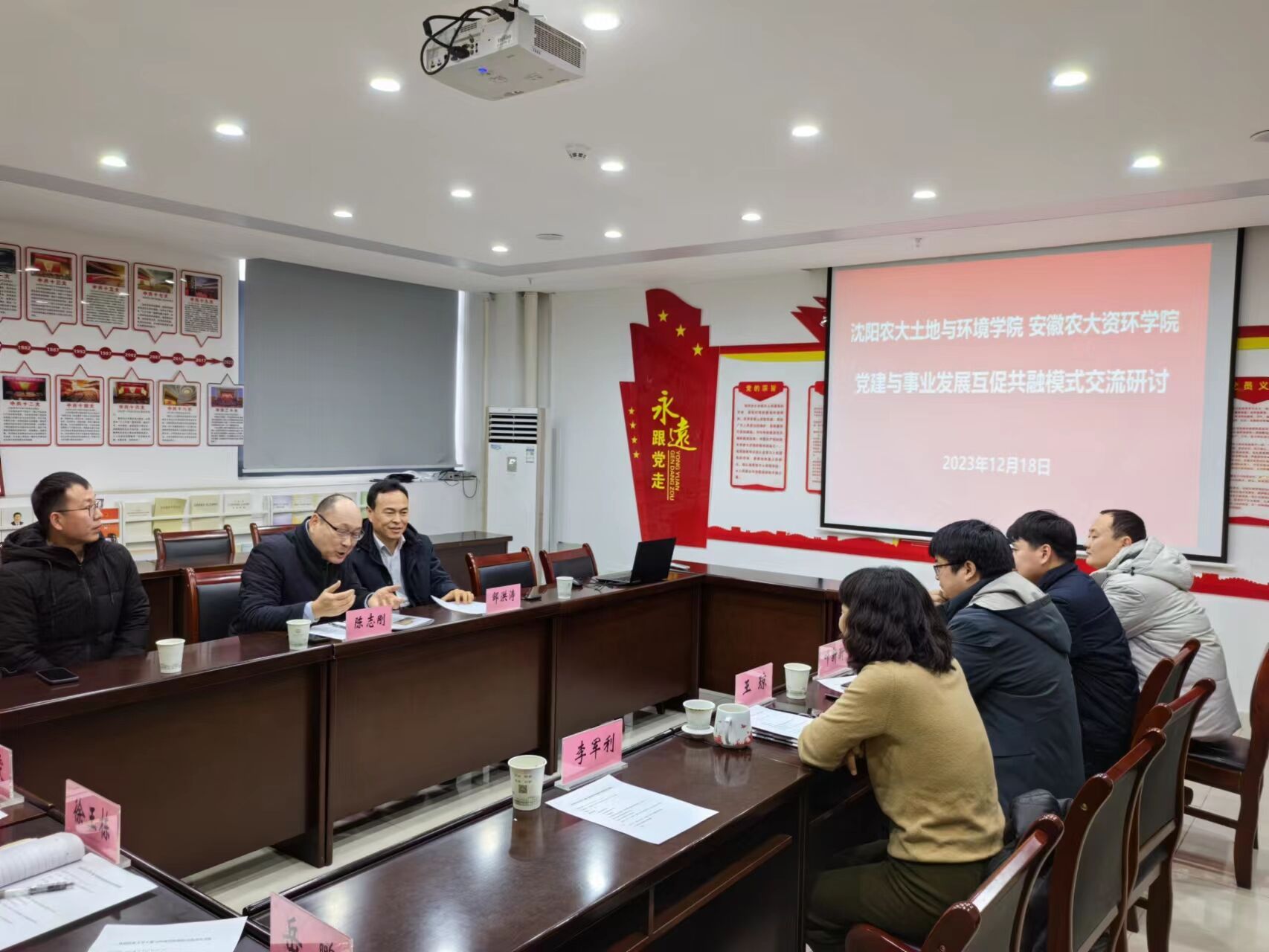 陈志刚对学院近年来发展取得的各项成绩予以充分肯定。他指出,安徽农业大学资源与环境学院通过构建完善“一抓双促三提升”党建引领事业高质量发展双融双促体系,探索创新党建工作新模式新机制,不断总结凝练特色做法,在实现高质量党建引领高质量发展上取得了显著成绩、提供了有益经验,希望两院持续深化交流交往,在党建示范引领、人才交流培养等各领域不断加强务实合作,推动两院事业高质量发展。