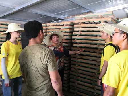 “山泉流水养鱼”在安徽黄山已有几百年历史,已被农业部列入“中国重要农业文化遗产”。同学们深入农户的养殖基地进行实地调研并亲身实践,帮助养殖户操作喂食,队员们在劳动中进一步熟悉了泉水养鱼的全过程,也深切体会到了养殖户管理和发展养殖基地的不易。通过调研了解,目前,山泉流水养殖规模4万多平方米,有效地实现了山区农民脱贫致富。焦村镇还利用泉水养鱼打造美丽乡村建设的新品牌,同时大力发展悠闲渔旅产业,已经成功举办了两届龙虾旅游节,“渔家乐”更是促进了贫困户的增收。渔旅融合,让村民的鱼池变成了“聚宝盆”,打造了山区农民脱贫致富的新亮点。