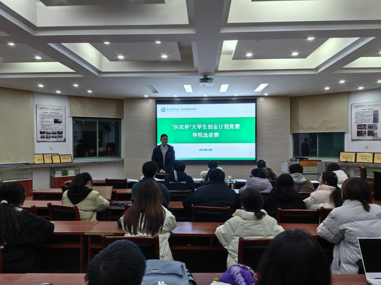 本网讯 12月13日,林学与园林学院在林学楼2楼报告厅举办第十一届“兴农杯”大学生创业计划竞赛院级选拔赛,校社会合作处、新农村发展研究院副处长张志平、校团委创新创业负责人魏安康、学院分管教学、学生工作负责人等现场指导评审。