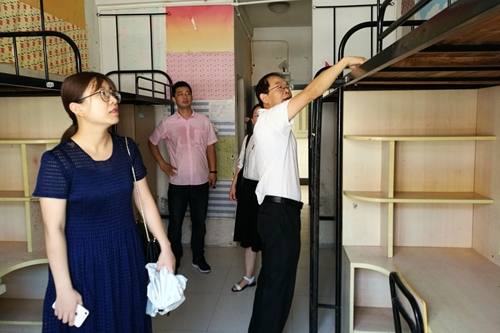 江正君一行逐个查看了新生宿舍的卫生状况和配套设施,对新生宿舍室内门窗、阳台的卫生安全情况和床铺、衣柜、空调以及水电等设施进行了细致的检查。在查看新生宿舍后,江正君指出,学生住宿是大事,安居方可乐学,没有安定舒适的“根据地”,学生很难集中注意力。尤其是大一新生,宿舍是他们对学校的第一印象,因此宿舍环境至关重要。