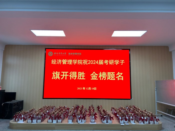 活动现场,学院领导老师为同学们发放精心准备的经管定制“考研福袋”,并向考研学子们表达了真挚的祝福,对同学们勤奋学习、追求梦想的精神给予了高度赞扬与肯定。希望同学们合理安排近期作息,保持平稳的心态,鼓励大家以最饱满的精神状态全力以赴迎接最后的考试。考研学子们纷纷拍照打卡,现场合影留念,对学院的“关心”、“用心”倍感温暖,表示一定珍惜最后备考时光,争取上岸,不负厚望!