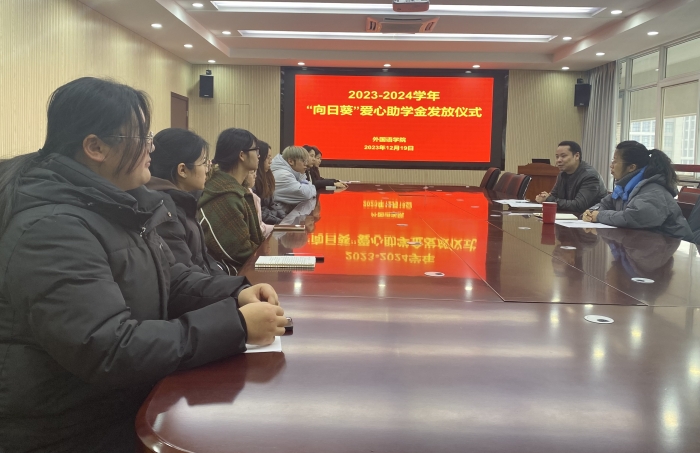 12月19日上午,学院在外语楼506会议室进行了“向日葵”爱心助学金发放仪式,副院长许宗瑞、受助学生以及相关辅导员参加了活动,活动由党委副书记姬惠惠主持。会上,受助学生结合在校学习和生活情况、学业和职业规划等问题进行了汇报交流,许宗瑞勉励同学们常怀感恩之心、树立远大目标、扬起奋进之帆,将校友的资助转化为前进的动力,在学好专业知识的同时兼顾实践锻炼,力争全面发展,将来做爱心传递者。会后,受助学生纷纷自发写下了感谢信,深刻表达了对校友的感激之情。“向日葵”爱心助学金由英语专业校友缪琳琳捐助,已连续捐助7年。
