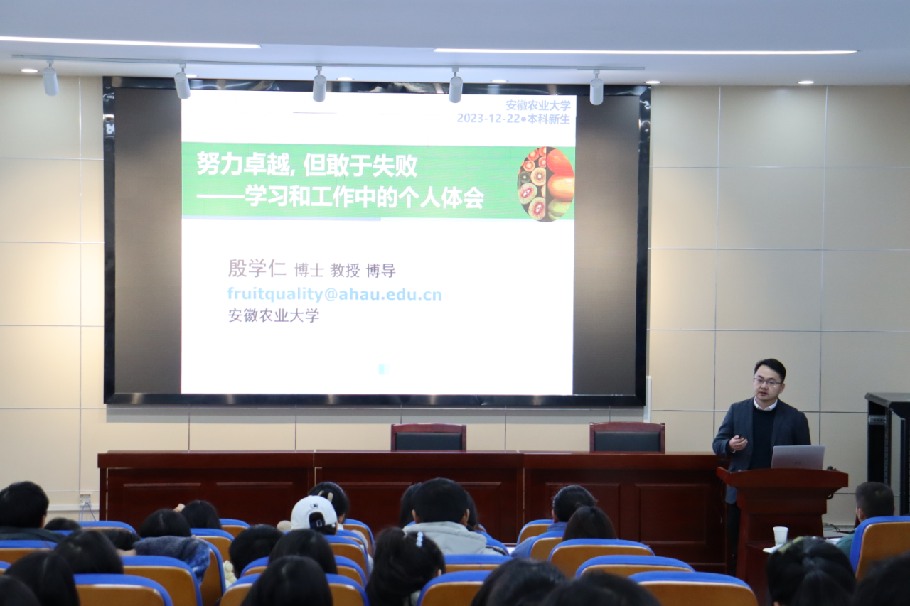 会上,吴俊教授以“深耕梨园,花果飘香”为题,与同学们分享了自己求学道路和科研经历,生动诠释了园艺产业的价值与未来发展方向,并勉励同学们积极追求进步、汲取知识,给予同学们人生智慧启迪。殷学仁教授就园艺产业的转型、技术的突破与升级等话题与同学们深入交流,结合自身经历鼓舞同学们要努力追求卓越,敢于面对失败,战胜困难。会后,进行了提问回答,两位教授对同学们提出的问题一一回复。