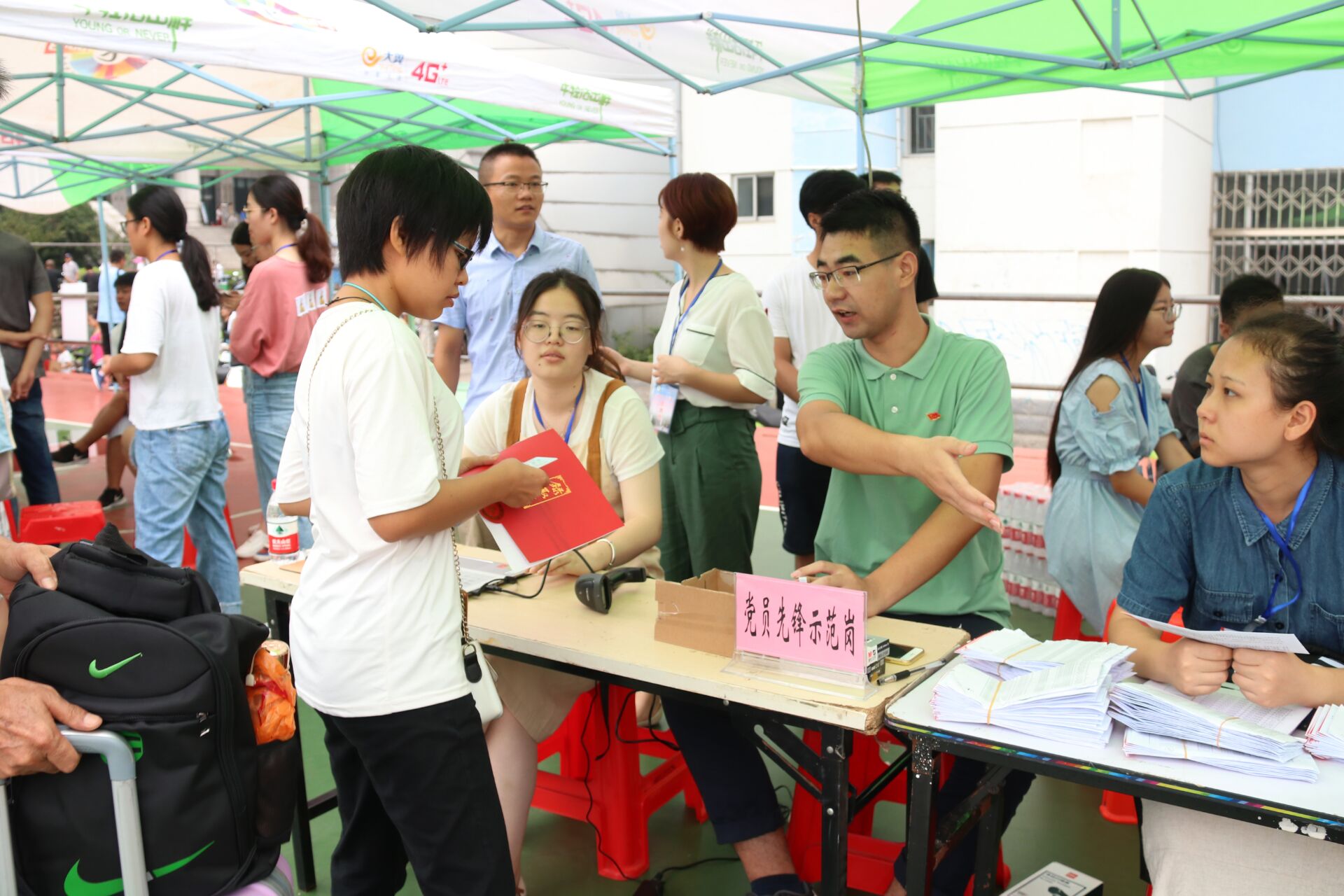 9月1日,学院党政领导、新生辅导员和班主任一大早就来到迎新现场,参与迎新工作,与学生和家长们亲切交流。学院组织高年级学生骨干成立“迎新志愿者服务团”,并设立“党员服务岗”,为新生同学提供细致周到、全流程的贴心服务。