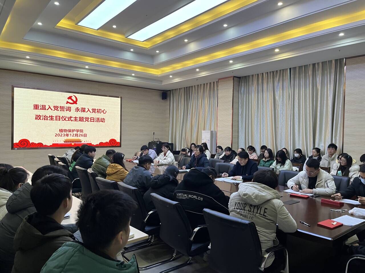 本讯网 12月26日,植物保护学院党委在中西部综合楼1213室开展主题党日活动。院党委书记刘柳、5名党员教师和47名学生正式党员和35名学生预备党员参加会议。会议由院党委副书记汪小强主持。