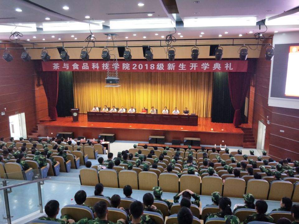 本网讯 9月5日下午,茶与食品科技学院2018级新生开学典礼在图书馆一号报告厅举行。学院党政领导、各系主任、新生辅导员及2018级全体本科新生参加了会议。学院党委副书记、副院长张国学主持了大会。