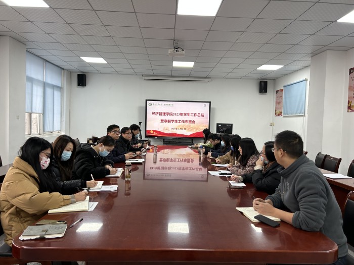 本网讯 1月8日上午,经济管理学院在304会议室召开了2023年学生工作总结暨寒假学生工作布置会,学院党委书记吴国卿、全体专兼职辅导员参加了此次会议,会议由学院党委副书记、纪委书记周涛主持。