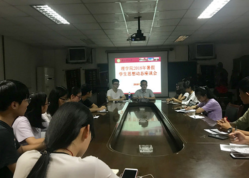 本网讯 9月7日,理学院在二教227会议室召开新学期学生思想动态座谈会,院团委老师,16、17级部分学生代表参加了会议。
