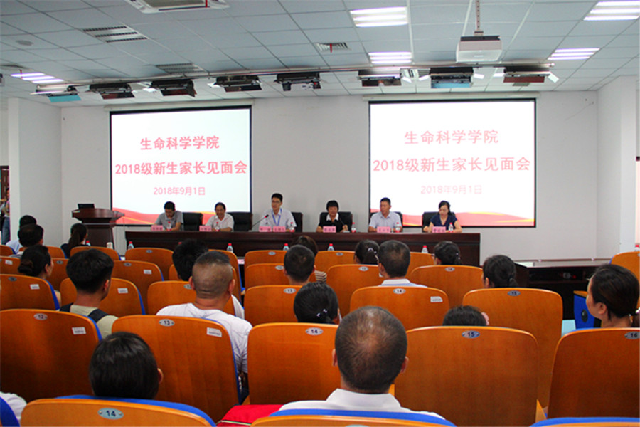 9月1日下午,生命科学学院在科技楼441室召开了2018级新生家长见面会,近300名新生家长参加了见面会。学院党委书记张健、常务副院长蔡永萍、系主任以及全体新生辅导员参加了本次家长见面会。学院领导以“面对面”的形式向家长介绍了学校及学院概况、教育教学、学术科研、师资力量、就业方向等情况,并就家长广泛关注的问题进行了讲解和答疑。同时,也希望家长能够和学院保持联系,加强沟通,“家校”合力,共同做好学生的教育管理工作。
