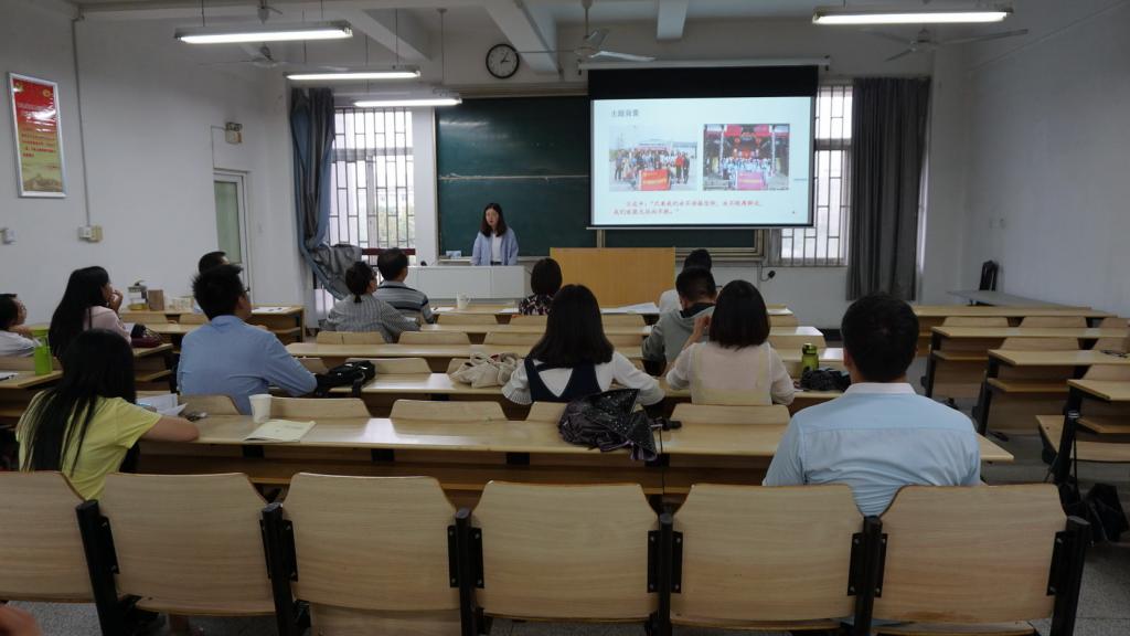 本网讯 为深入学习宣传贯彻习近平新时代中国特色社会主义思想和党的十九大精神,推进研究生理论宣传水平和研究能力,9月17日下午,马克思主义学院在人文楼302举办马克思主义理论专业研究生“新时代、新思想、新作为”理论微宣讲比赛。研究生学院党委副书记宋燕平应邀担任评委并作点评,人文社科学院党委书记孙超、马克思主义学院院长黄洪雷等观看了比赛并担任评委。