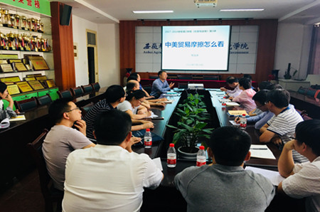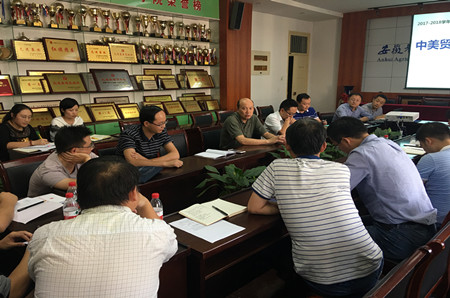 学院形势与政策课教学负责老师传达了相关文件精神和课程教学安排,结合前期学校统一培训内容,分别从中美贸易摩擦的来龙去脉、最新进展和中国如何应对以及对世界的影响等方面进行了集中备课重点发言。与会专兼职辅导员就关键环节内容进行了讨论交流。