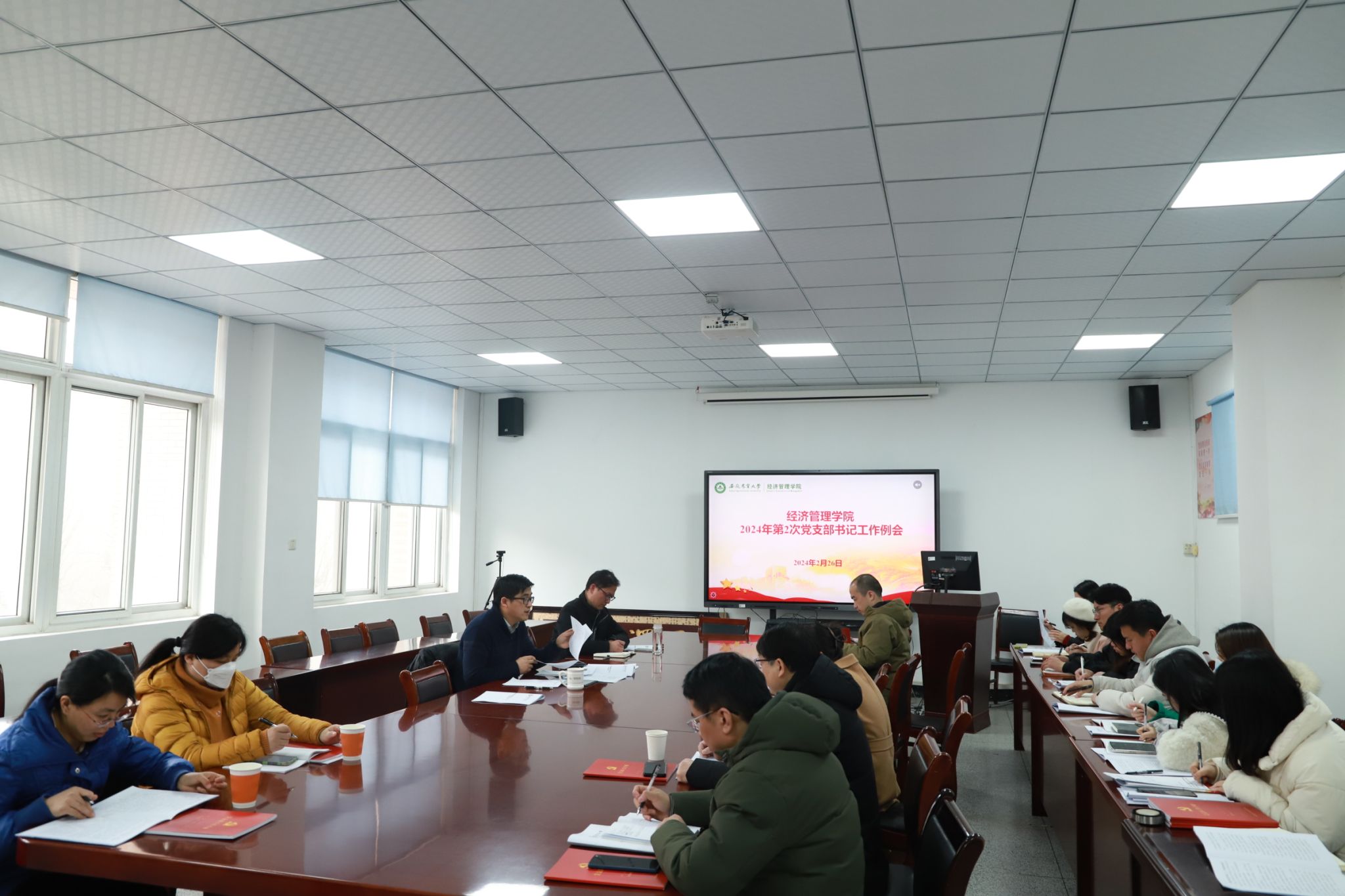 本网讯 2月26日下午,经济管理学院党支部书记工作例会在经管楼304会议室召开。学院全体党支部书记参加会议。会议由学院党委书记吴国卿主持。