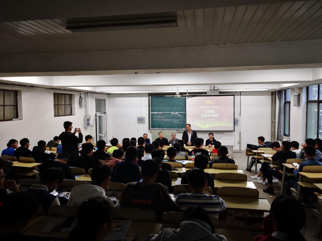 本网讯 10月12日下午,工学院邀请安徽环新集团(ATP)生产技术部副部长、1998届农业机械化专业校友朱正保来院做了一场题为《如何规划职业人生》的报告,院党委副书记、副院长孙福主持活动,学院2018级新生约100人参加了报告会。