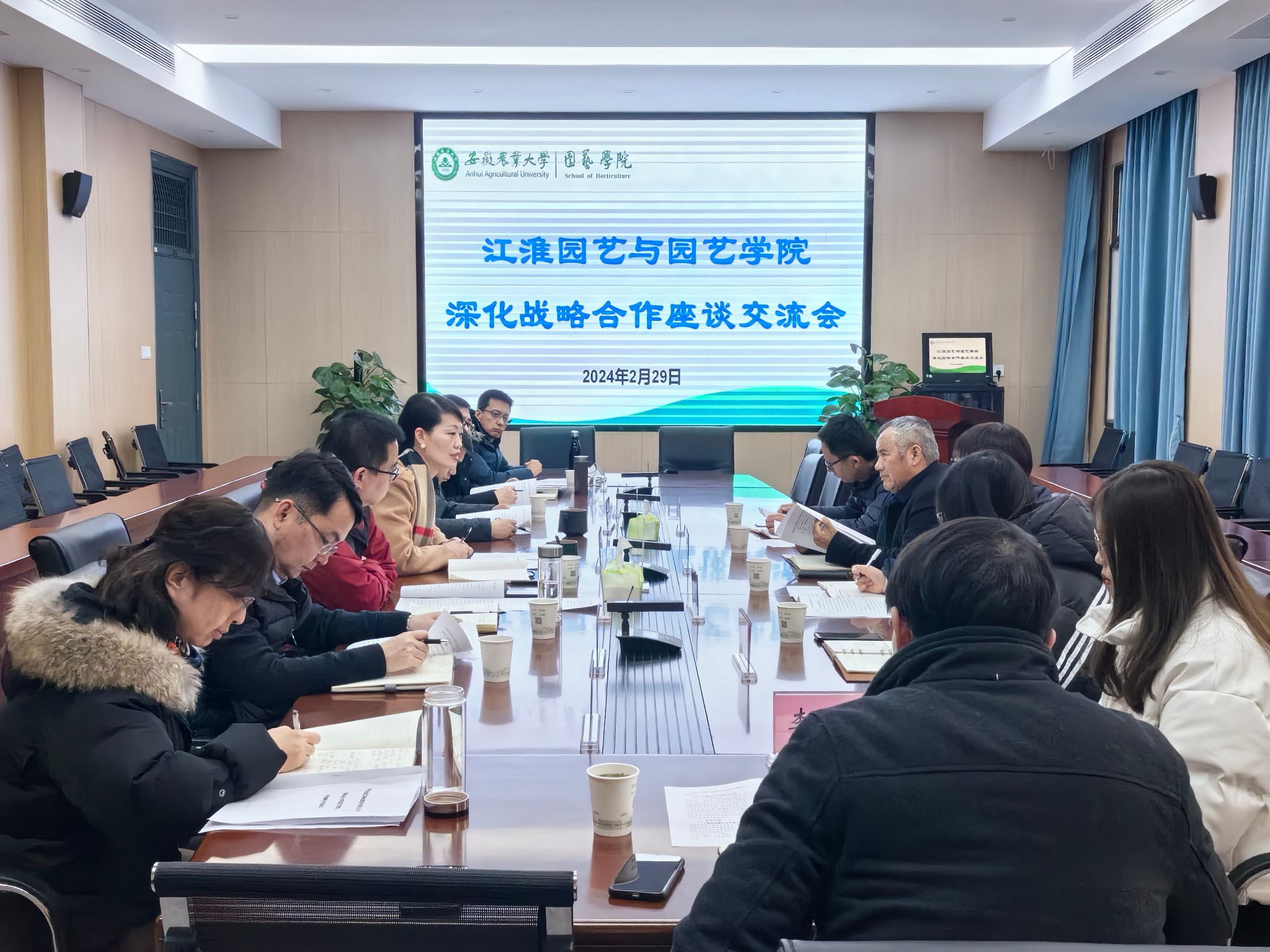 赵冠艳对戴祖云一行表示热烈欢迎,对江淮园艺一直以来对学院工作的关心支持表示感谢,并就双方目前在人才培养、科学研究、社会服务等方面合作情况,以及未来深度合作内容进行了介绍。戴祖云介绍了目前江淮园艺主要从事种业研究和发展方向,就双方技术人才合作培养、产教融合等合作方向表示期许。