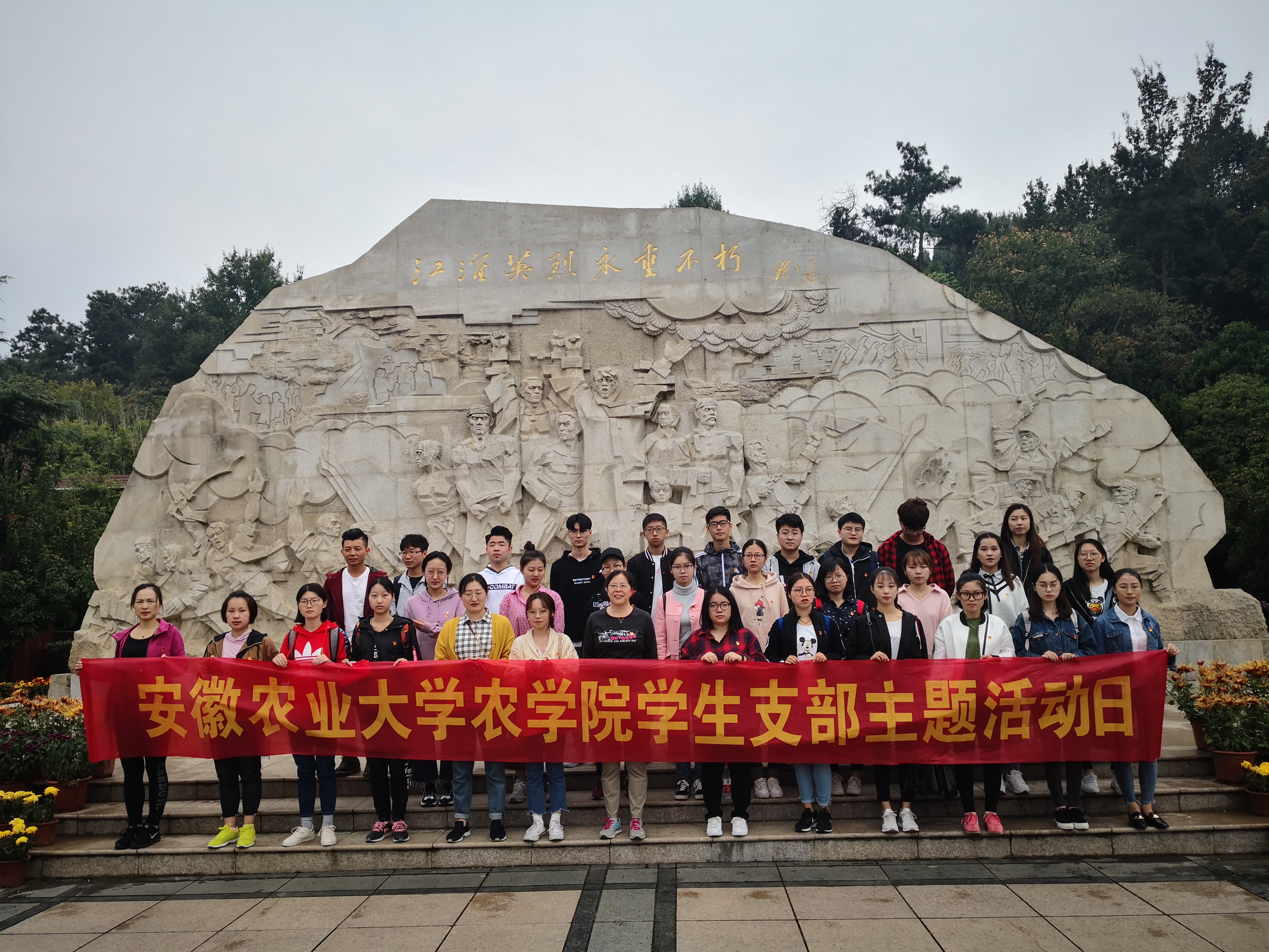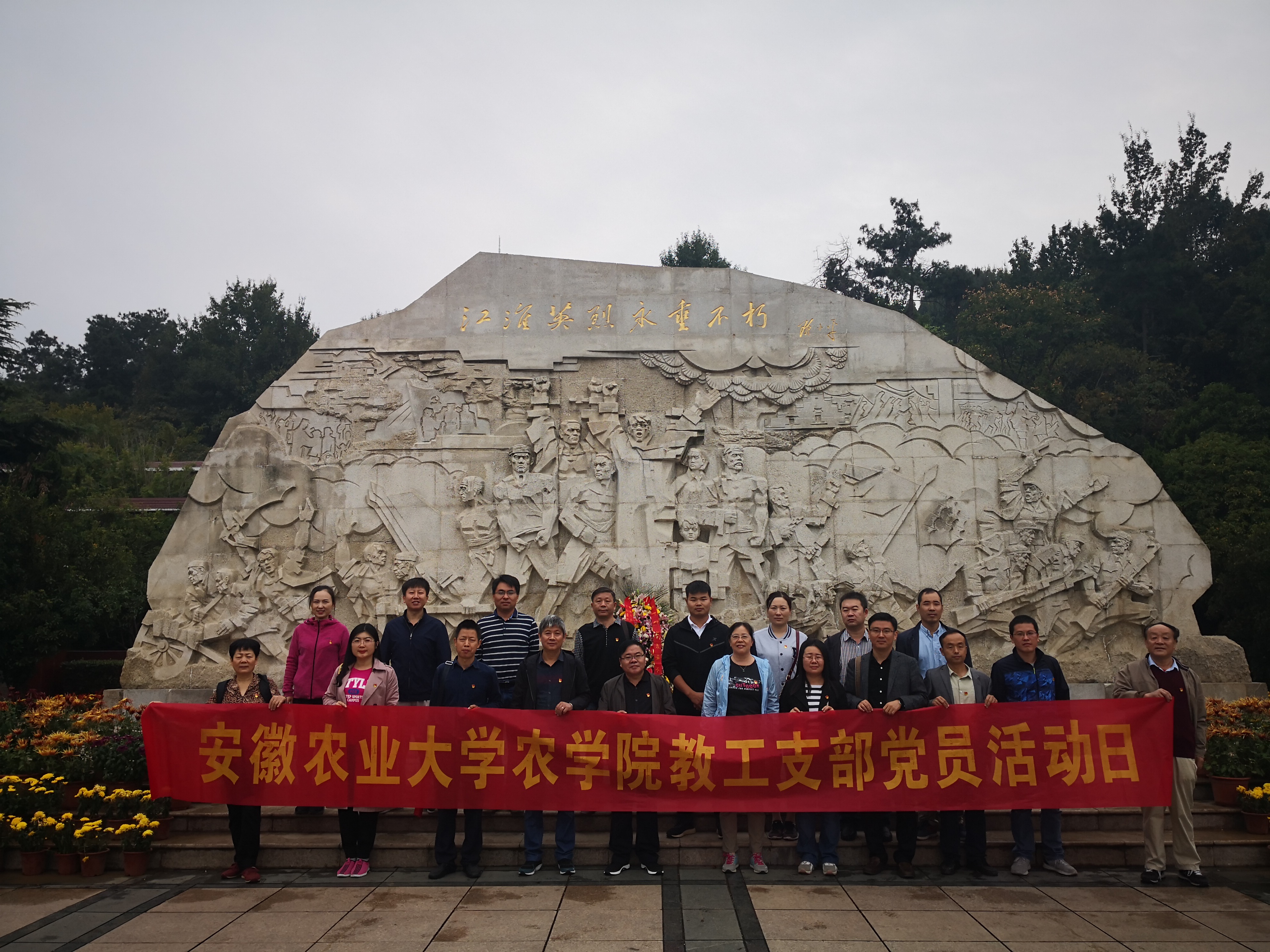 本网讯 10月14日上午,农学院党委组织全体党员、56期入党积极分子赴大蜀山烈士陵园开展以“缅怀革命先烈,重温入党誓词”为主题的党日活动,缅怀革命先烈,学习红色革命历史文化,重温入党誓词。