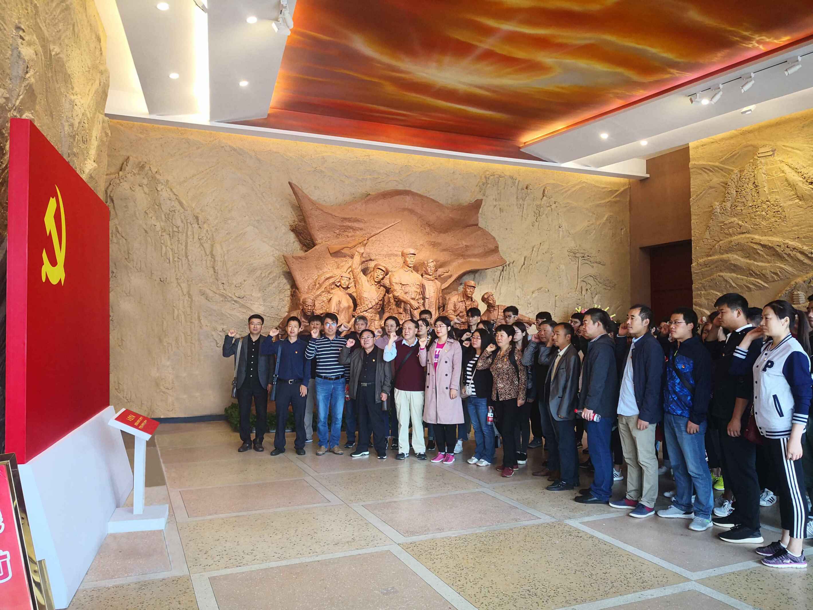 在革命烈士事迹陈列馆的宣誓大厅,在党委书记汪凤莲的带领下,全体党员面向党旗重温入党誓词,洪亮而庄严的宣誓声响彻大厅,忠心向党,告慰先烈。在随后的瞻仰过程中,大家通过展厅里陈列的历史文物、珍贵照片和真实史料再次追忆安徽革命的光辉历史和党的峥嵘岁月,感受革命前辈对党绝对忠诚的信念和不懈奋斗的担当。