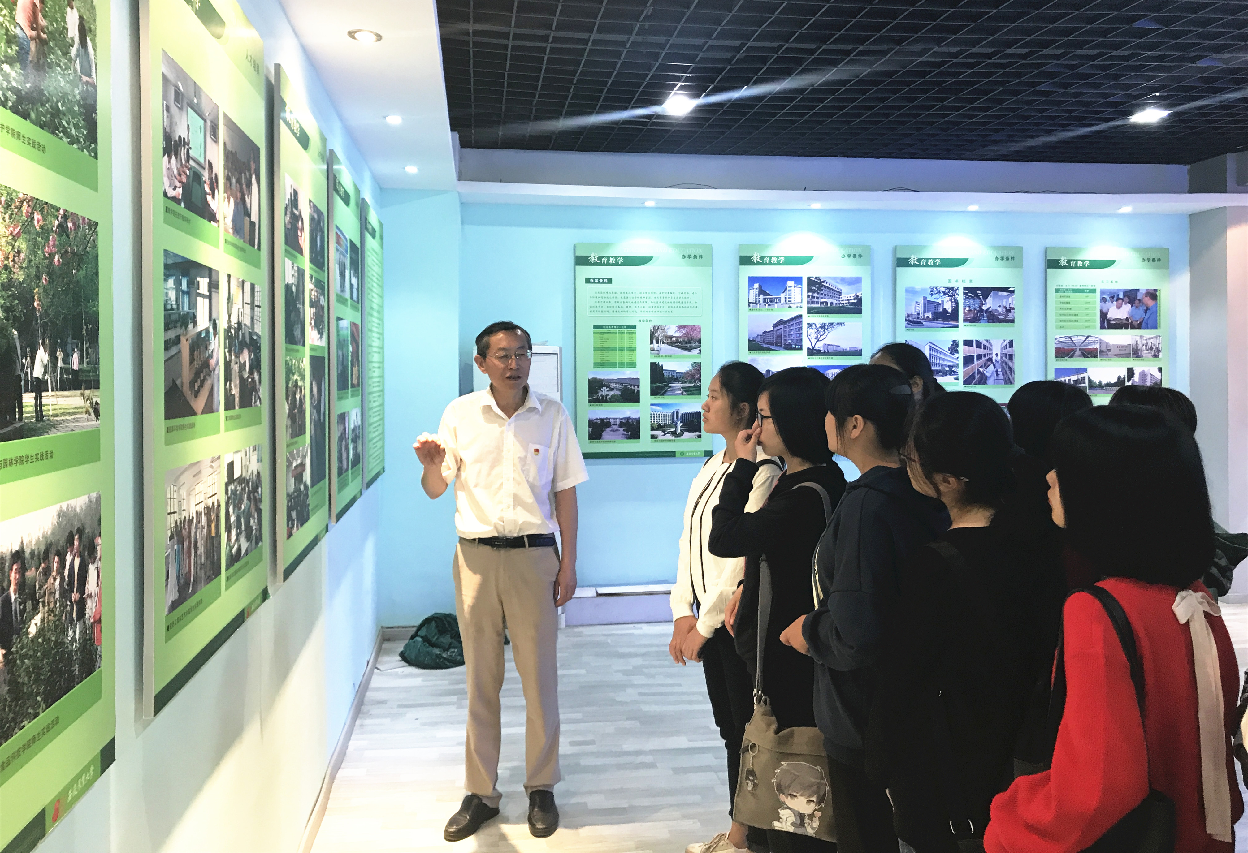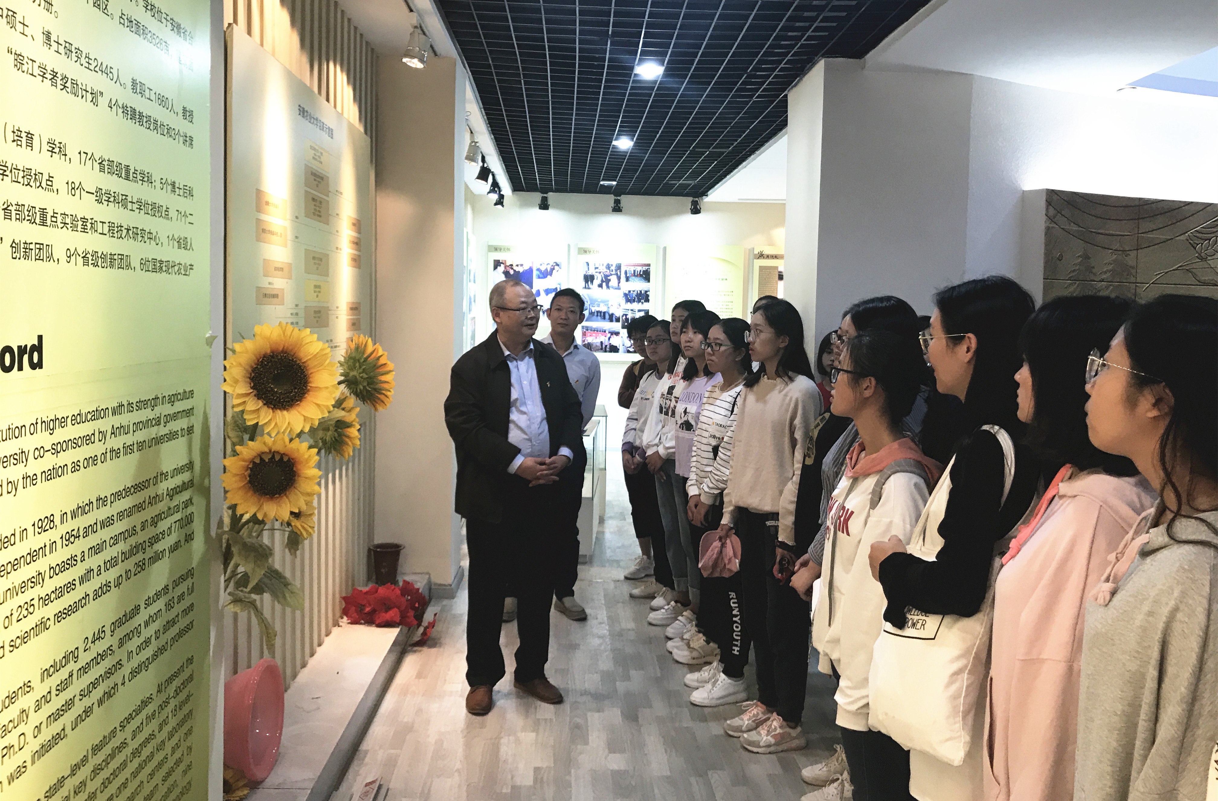 参观中,管志权、蒋传和分别结合展板内容和馆内陈列物品,从办学历程、发展成就、学科建设、人才培养、社会服务、校友风采等角度介绍我校自建校以来的点滴历程,勉励青年学子珍惜大学时光,积极树立奋斗目标,用“青春梦”托举“安农梦”。同学们认真聆听,从一个个展板、一件件历史实物中,深切地感受到学校厚重的历史积淀、沧桑的办学历程、丰硕的办学成果和奋发的进取精神,为学校取得的成就、为学校新的发展而骄傲。管志权、蒋传和还为青年学子介绍了人文学院的发展历程,进一步增强了学生对学院的认同感、归属感。