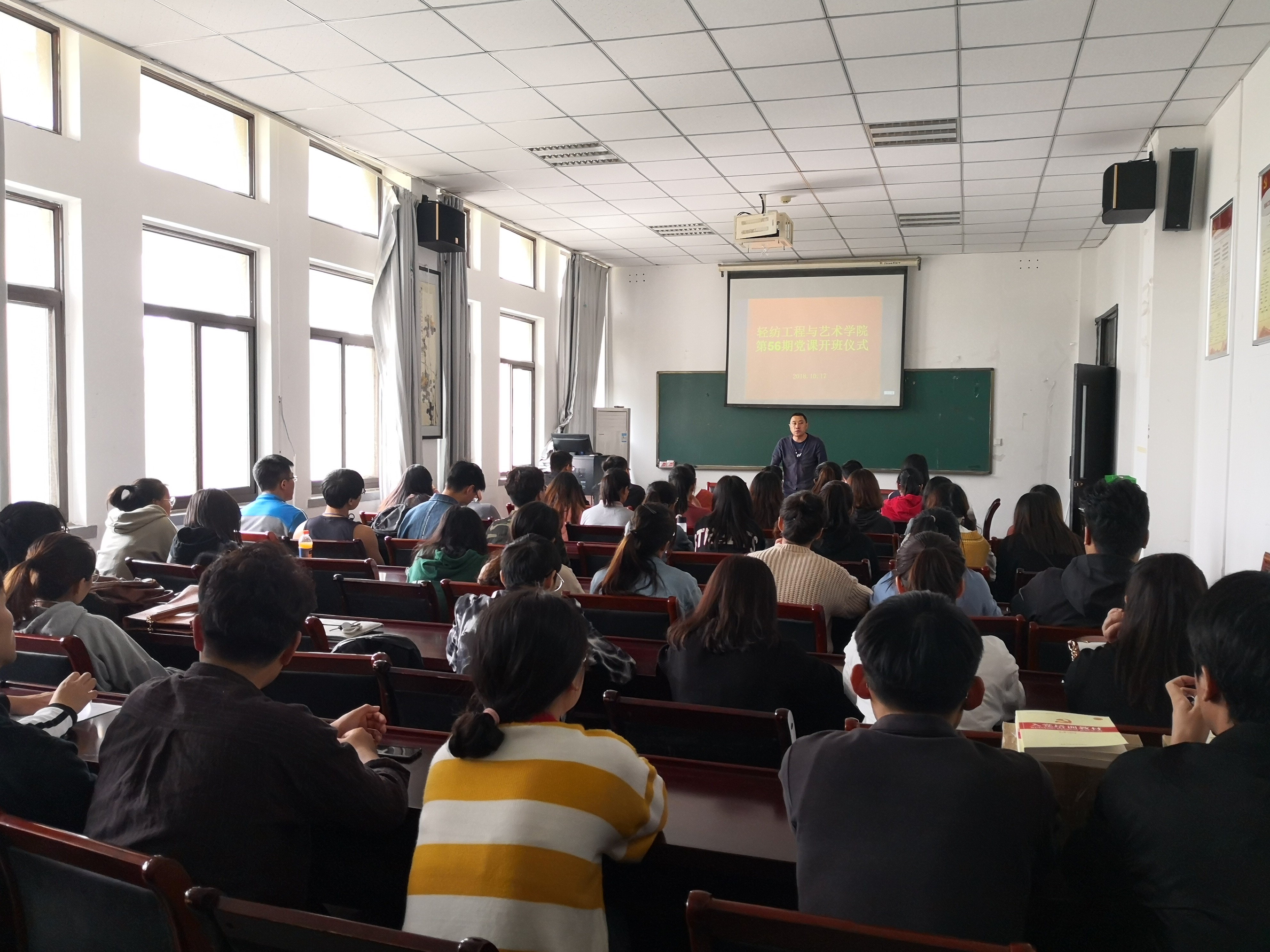 本网讯10月17日中午,轻纺工程与艺术学院在院四楼会议室举办了第56期党课开班仪式,院党委副书记吕剑秋、党课班主任、第55期党课优秀学员代表以及第56期入党积极分子参加了本次开班仪式。会议由党课班主任主持。会上,吕剑秋从三个方面对入党积极分子提出要求。要珍惜这次党课培训的机会,严格遵守党课纪律;要坚定自己的选择,努力成为信念坚定、言行一致的合格共产党员;要在学懂弄通做实上下功夫,积极在同学中发挥模范带头作用。