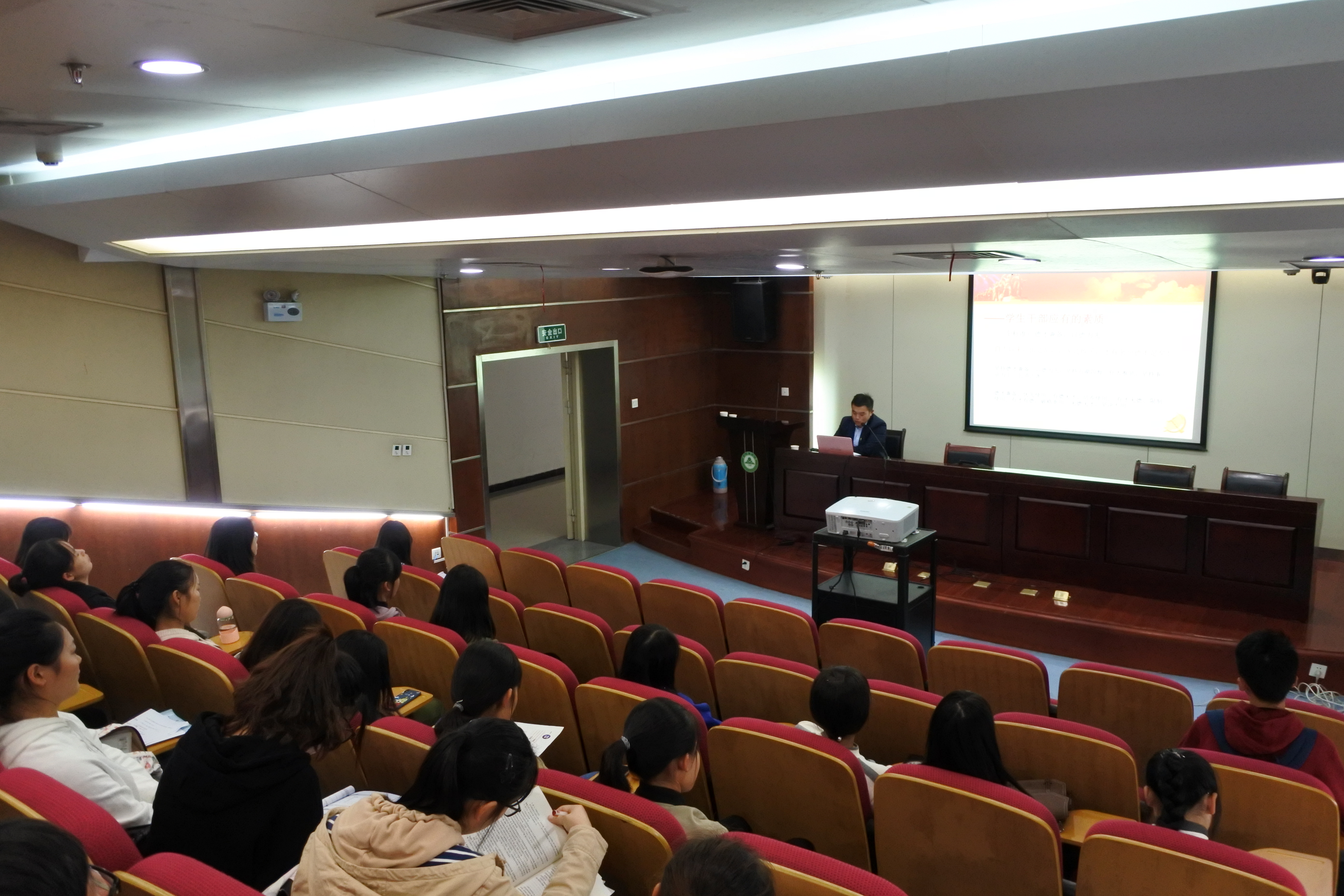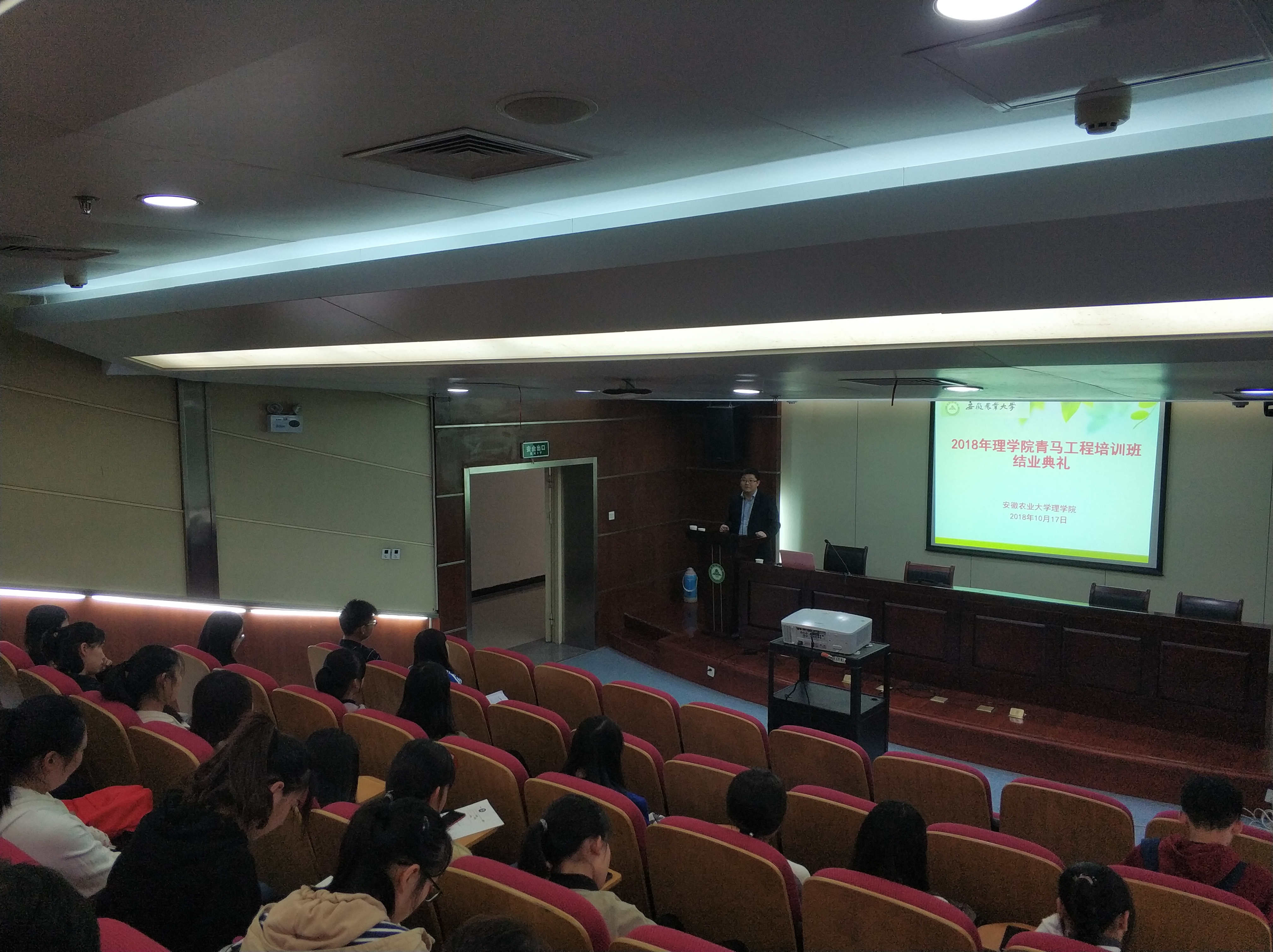 本网讯 10月17日下午,理学院在图书馆三号报告厅开展校友报告会暨青马班结业典礼。活动特邀肥东县委组织部王乐为大家作报告,学院党委副书记兼副院长韩弥明,统计系相关老师及理学院青马班学员参加本次会议。