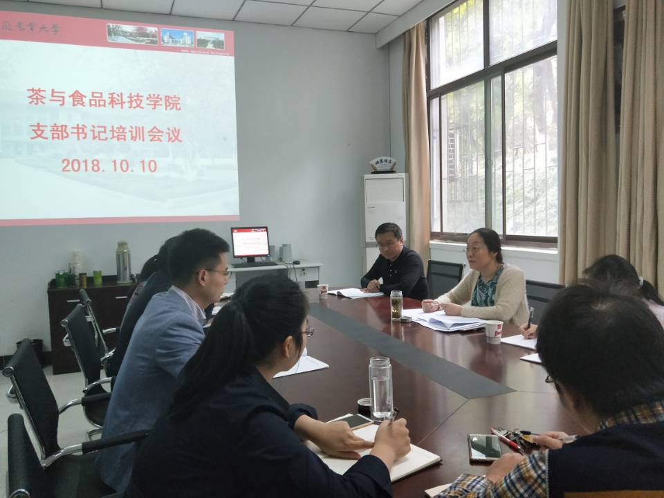 茶与食品科技学院党委高度重视党支部书记和党务骨干政治理论水平和党务相关业务能力的提升,坚持理论与实践相结合,形式多样,长期开展培训学习工作,健全以专职人员为骨干、专兼职干部相结合的党务工作和思想政治工作队伍,并以双带头人培养为目标,不断提高党支部书记和党务骨干的党性修养、思想政治素质、业务能力和组织管理能力。