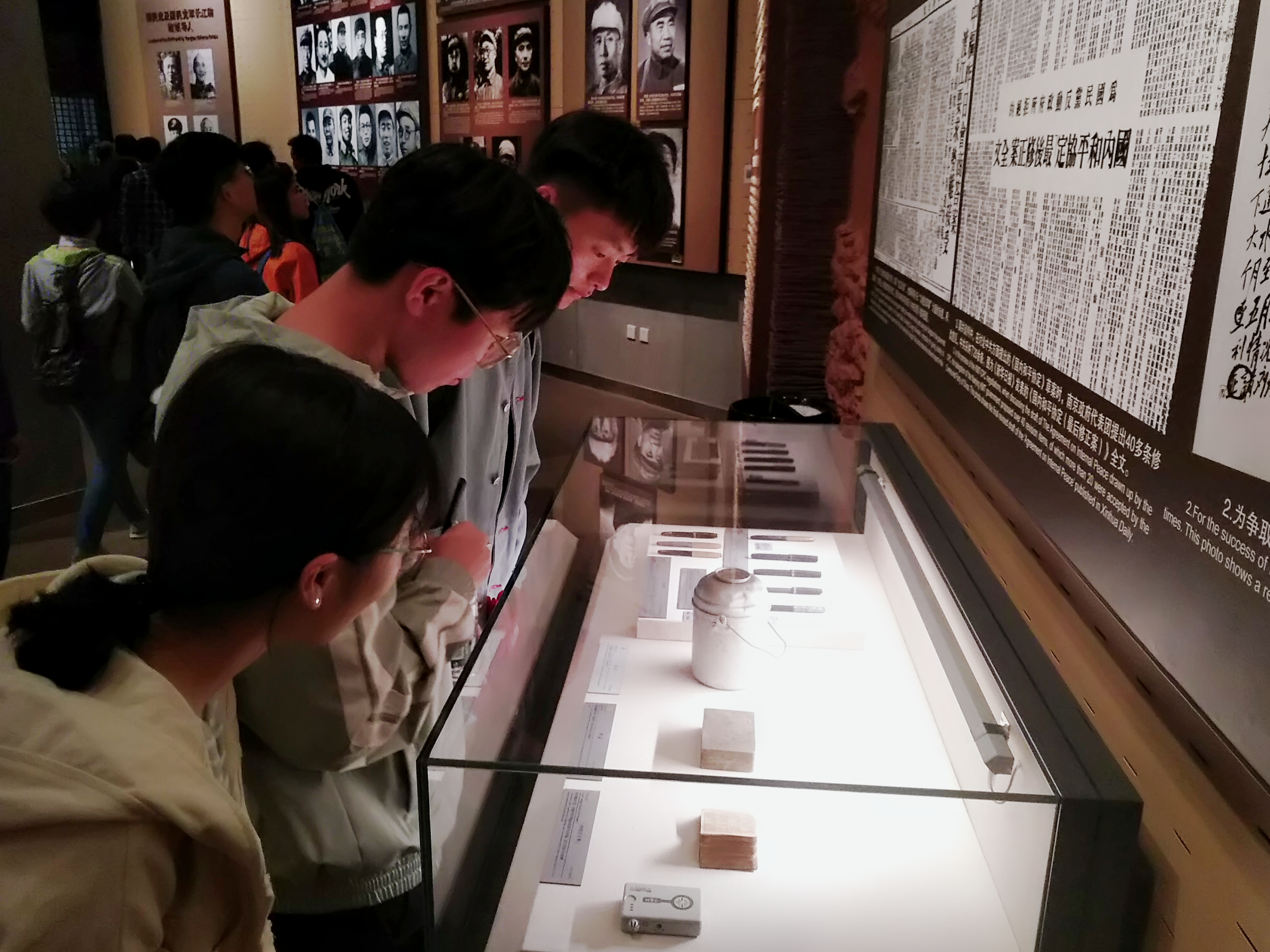 在渡江战役纪念馆广场,入党积极分子们怀着崇敬之情瞻仰了五位总前委成员塑像。随后,全体入党积极分子在纪念馆内进行了参观学习,大量的历史实物、老照片、油画、文字、影像和还原场景把同学们带回到那段难忘的岁月中,让他们更直观地了解到那段波澜壮阔的历史。