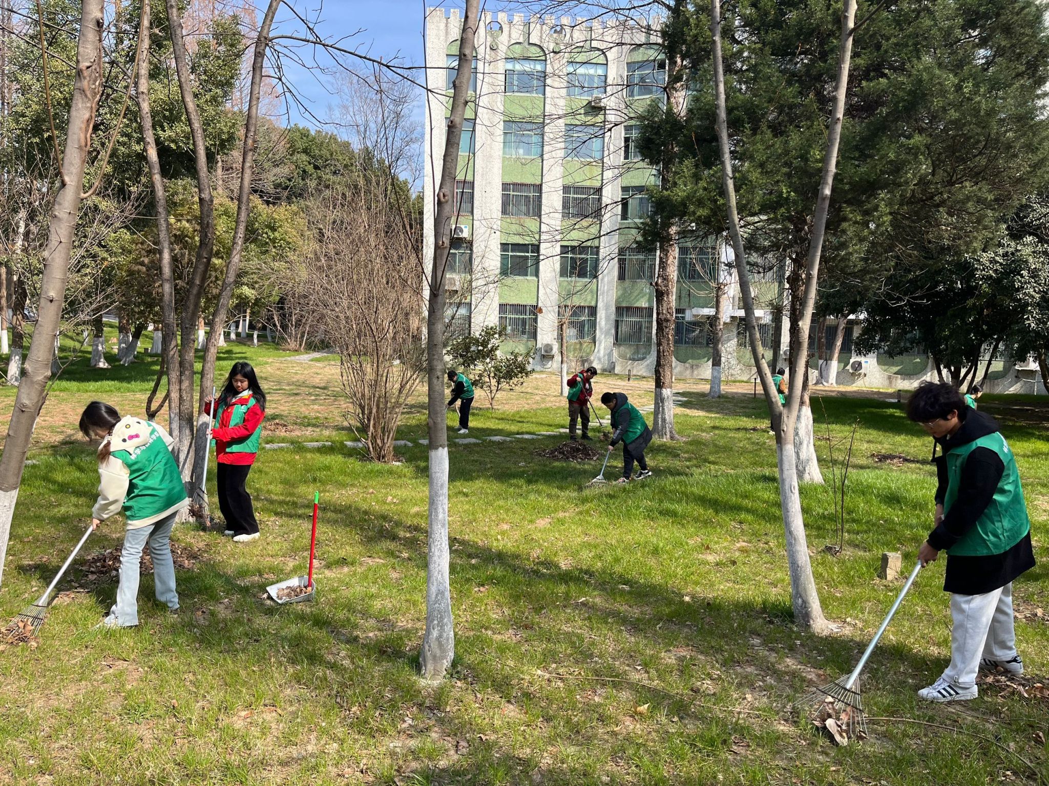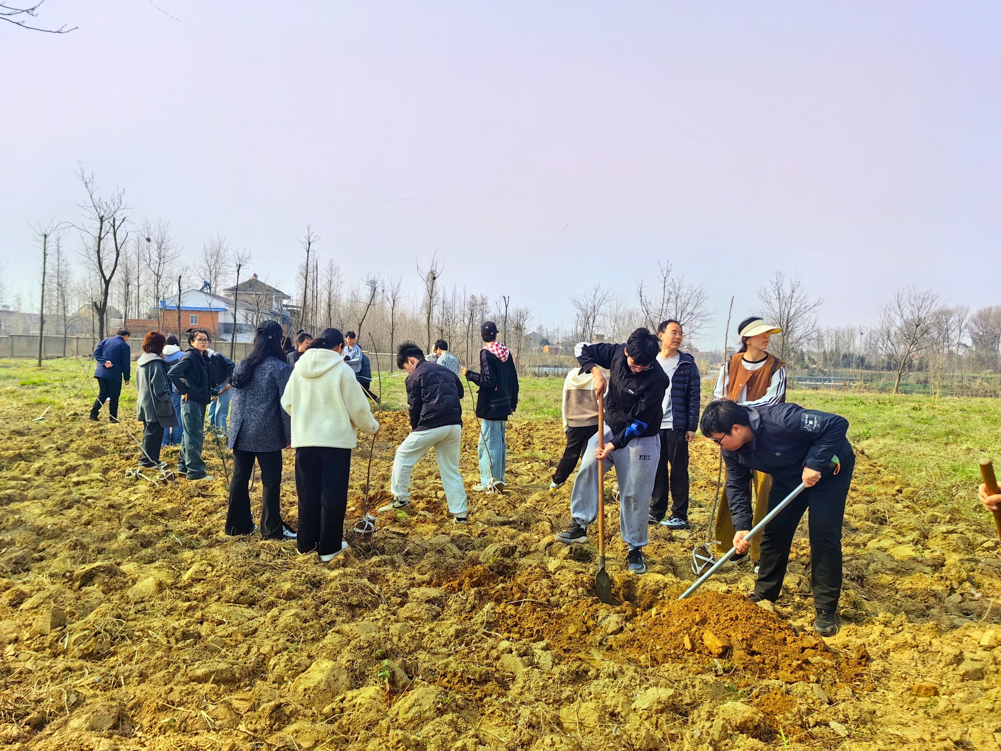在皖中试验站,学院师生30余人分工协作,挥锹铲土、扶植苗木、回填细壤、浇水培土……一桶桶清水,灌溉希望,一棵颗树苗,承载未来。今朝携手播撒绿,明年春色倍还人。经过师生们的共同努力,一株株新栽种的树苗迎风挺立,为大地增添了勃勃生机。林学系与乐农新村小学奥林校区联合举办“叶叶皆春色,片片美如画”植树节实践活动。通过一堂生动形象的校园植物科普课程,林学系师生发挥专业所长,指导青少年学生认识校园植物,感受生态校园,并指导学生们亲手制作精美的植物标本。青年志愿者在植树节这个特别的日子里,为美化、绿化校园提前做了充分的准备。他们分工合作,通过一把铲子,一个手套,充当起了校园林草的“守护神”。同学们表示,通过主题活动,不仅培养了劳动意识和综合素质,提升了爱院爱校情怀,同时也用行动彰显了林学学子的责任和担当。