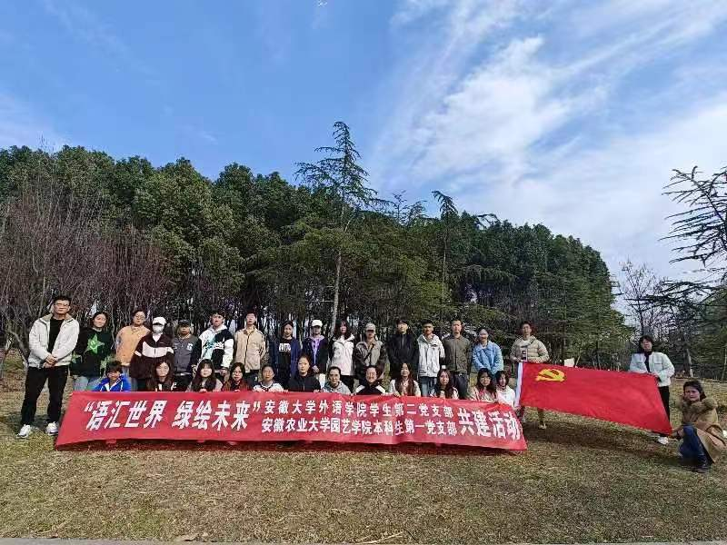 本网讯 为迎接第46个植树节,3月10日下午,园艺学院本科生第一党支部与安徽大学外语学院学生第二党支部携手举办“语汇世界,绿绘未来”植树节主题活动,三十余名师生现场参与活动。
