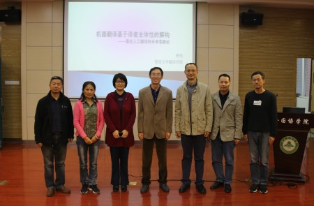 本网讯 10月24日下午,暨南大学教授陈伟在外国语学院502报告厅为学院广大师生带来了一场题为“机器翻译基于译者主体性的解构——兼论人工翻译的未来落脚点”的学术报告。外国语学院党委书记姚莉、院长孙志农等出席报告会,报告由孙志农主持。