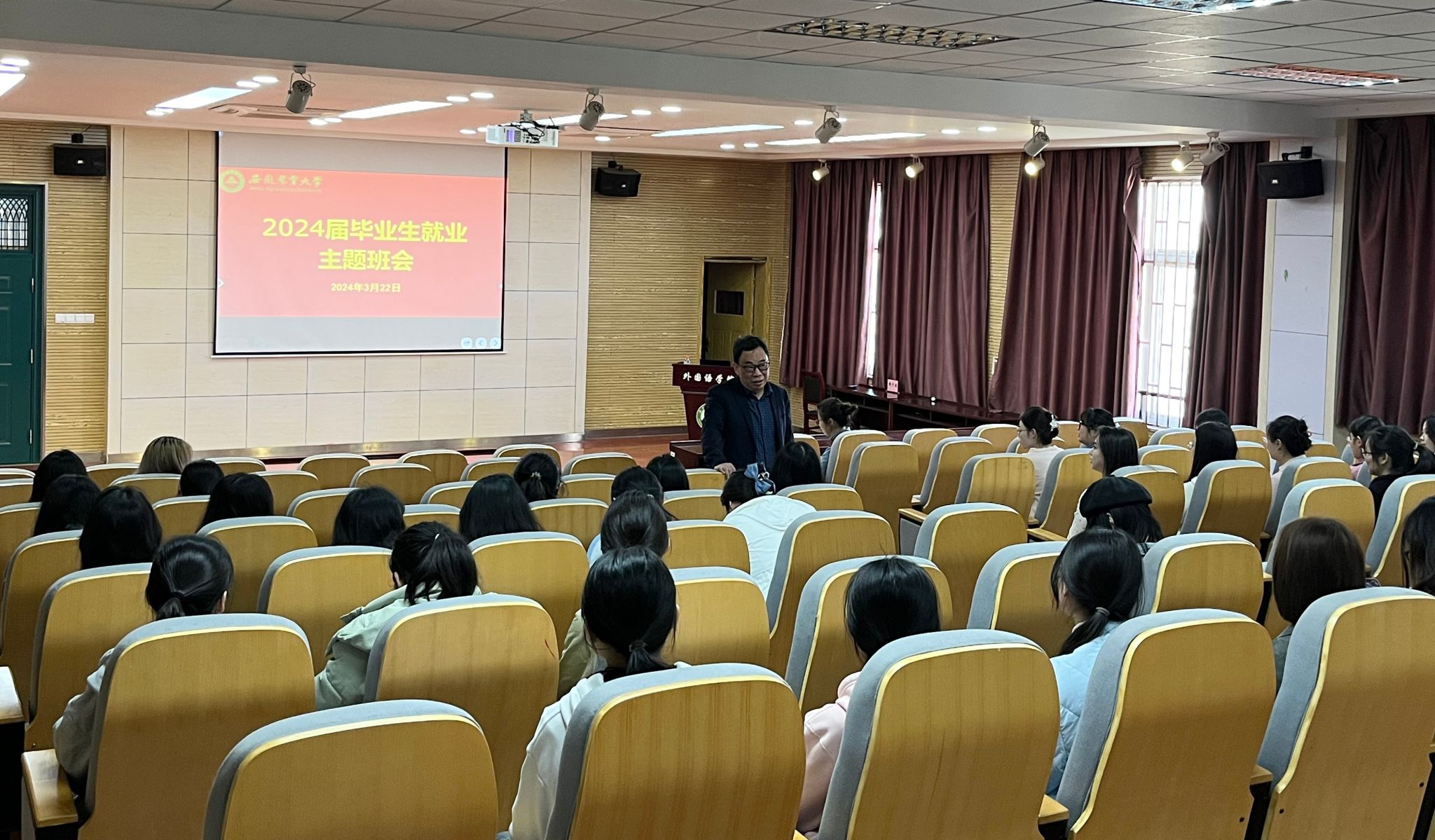本网讯 为扎实做好2024届毕业生就业工作,3月22日下午,外国语学院在外语楼502报告厅召开了毕业班就业工作主题班会,学院党委书记何如海、副书记姬惠惠参加班会,班会由毕业班辅导员主持。