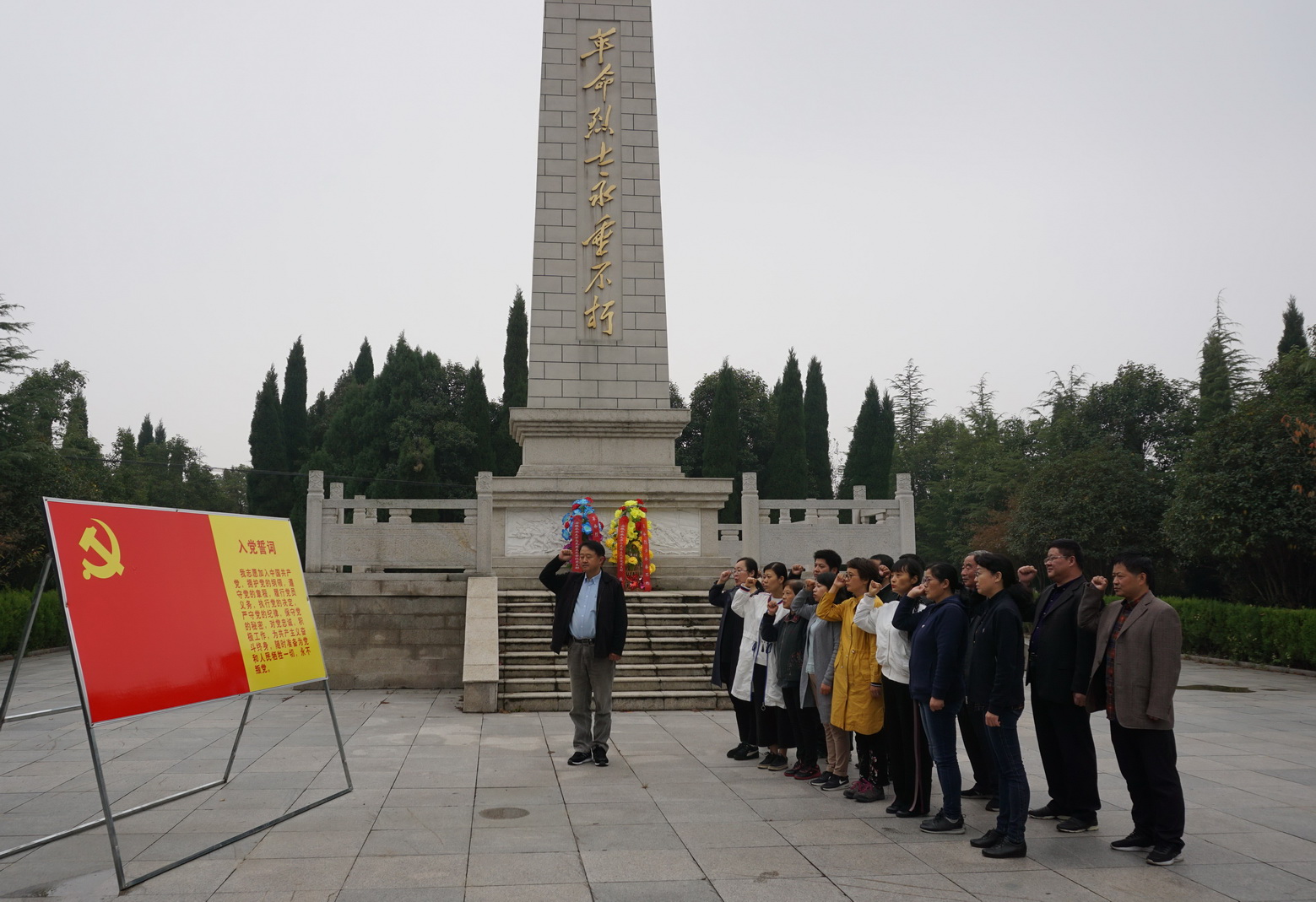 本网讯 为巩固“讲严立”专题警示教育成果,丰富思政理论课教学素材,铭记历史,坚定信念,10月25日,马克思主义学院党支部组织教师赴凤台县板张集革命烈士陵园开展“不忘初心 牢记使命”主题党日活动。