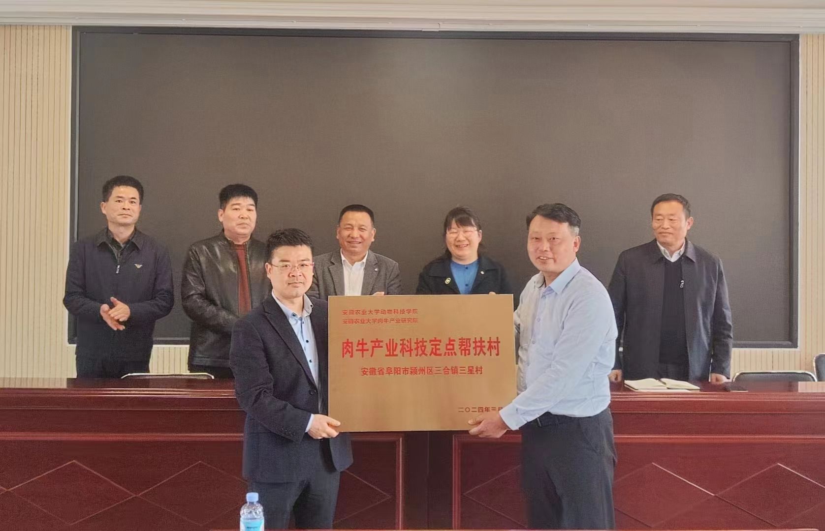 本网讯 3月22-23日,动物科技学院组织学院及肉牛产业研究院技术服务团队赴阜阳市颍州区三合镇三星村开展肉牛养殖实用技术培训并授牌。学院党委书记沈兆梅、院长张子军、肉牛产业研究院院长张运海及颍州区农业农村局、三合镇党委、三星村村委相关负责人出席授牌仪式。