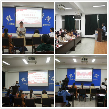 为庆祝学校90周年华诞,经管学院认真落实学校有关文件精神,高度重视,积极谋划,精心组织,开展了“90周年校庆主题教育月”学生系列活动。以主题班会为载体,共庆九十华诞。为庆祝我校建校90周年,经管学院全体本科生班级以各种形式组织召开90周年校庆主题班会。16级国贸专业以“我与改革共成长 青春奋斗正当时”为主题,通过主题演讲、教师送寄语等形式,大大提高了同学们的参与积极性;17级土管专业以“奋进新时代 共筑安农梦”为主题,通过忆校史,读校训庆祝母校90华诞;18级各新生班级也分别以“回望安农九十载 不忘初心创辉煌”、“承母校薪火 燃我辈青春”等为主题,就我校历史传承、文化底蕴、办学成果等进行了学习交流。通过本次主题班会活动,进一步增强了经管学子对学校的了解与热爱,同学们也纷纷表示将牢记“造就人才、改良农业、救济农村”的创校使命,自觉增强爱校荣校意识,争做“一懂两爱”的新时代安农人,为学校的美好明天添砖加瓦。