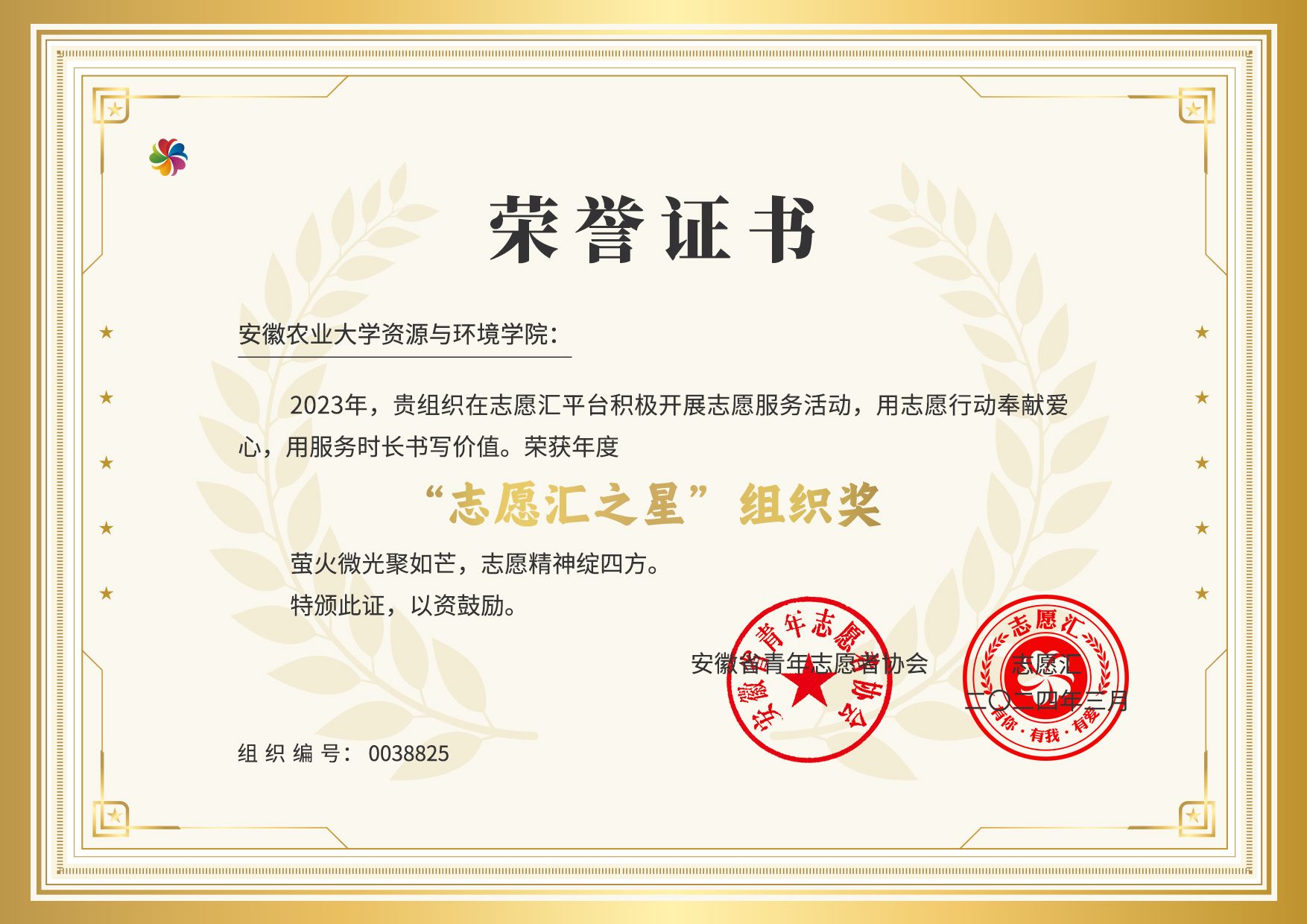 本网讯 近日,资源与环境学院志愿服务再传喜讯,学院荣获志愿汇平台第三届年度管理员大会“志愿汇之星”组织奖。