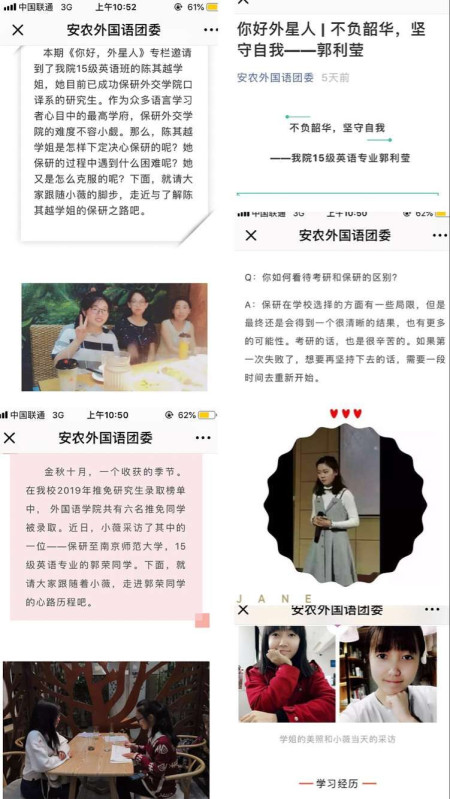 外国语学院10月份在新媒体平台加推专栏《你好——外星人》,对学院课业学习、实践锻炼、创新创业等方面取得优异成绩的同学进行采访报道,本次推出的一期为成功免试研究生学生党员先锋系列,树立学生身边的奋斗榜样,不断加强学风建设,以优良的学风庆祝安农建校90周年。