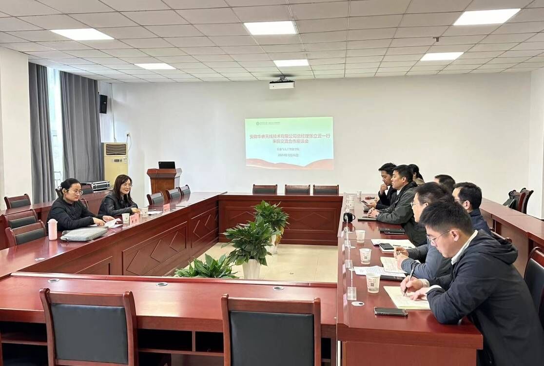 本网讯 3月26日,安徽华睿天线技术有限公司总经理张立云一行来到信息与人工智能学院开展交流合作座谈。学院院长辜丽川,副院长饶元、张成堂,电子信息工程系主任周小波,通信工程系主任杨宝华以及相关骨干教师参加了座谈会。会议由学院党委书记吴辰华主持。